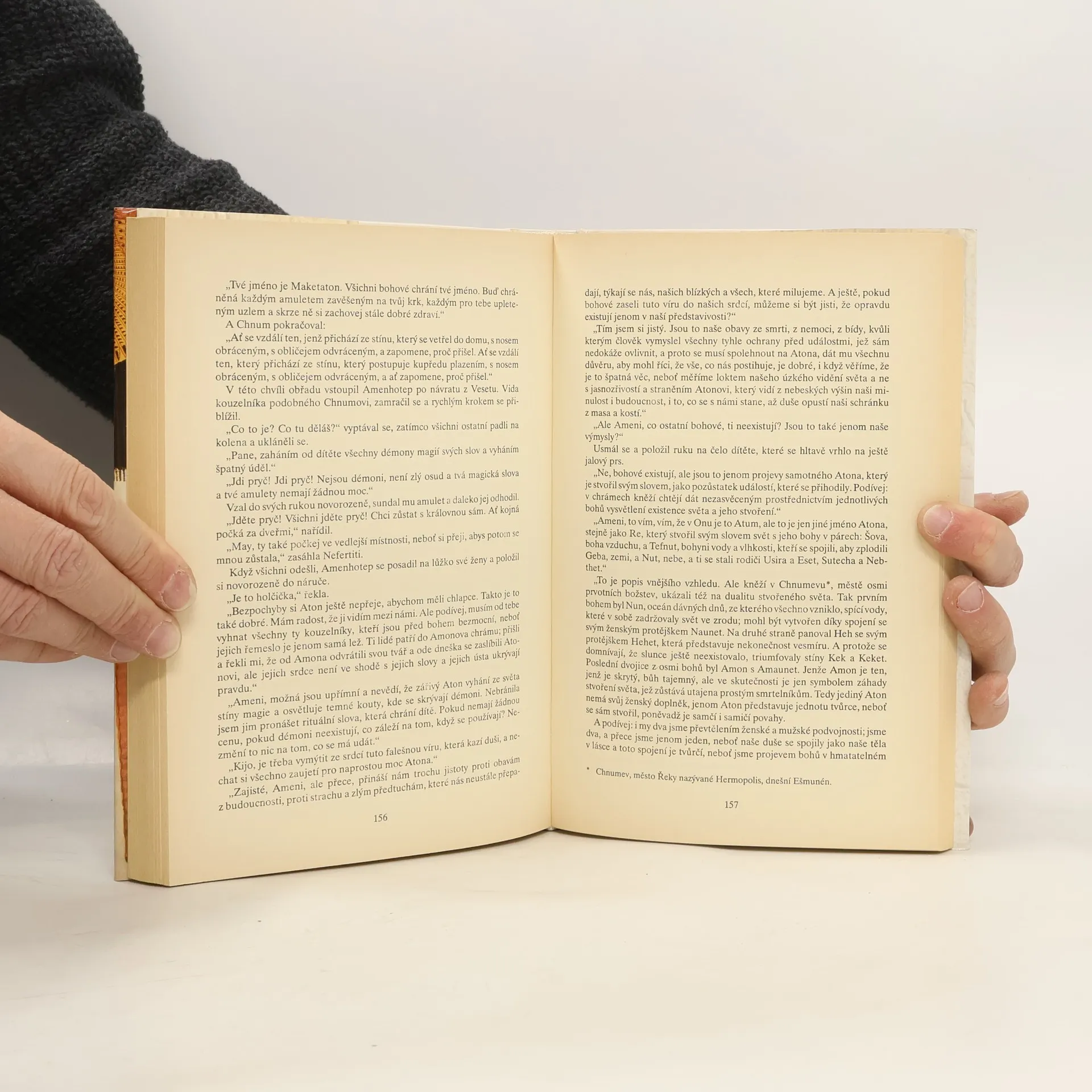 U paty velké sfingy se Kija ptá mladého snícího muže, zda tudy neviděl procházet do pouště lovce. Je překvapena jeho opovážlivou odpovědí a rozrušena jeho záhadným a vášnivým povídáním. Aniž by to tušila, mluví s Amenothepem IV. Z Kiji se stane Nefertiti, královna legendární krásy. Statečná a prudká dívka nemohla snít o kouzelnějším osudu. Královští manželé, Nefertiti a Amenothep, nastolují nový náboženský kult, kult Atona, boha slunce. Poprvé v dějinách již jen jediného boha.