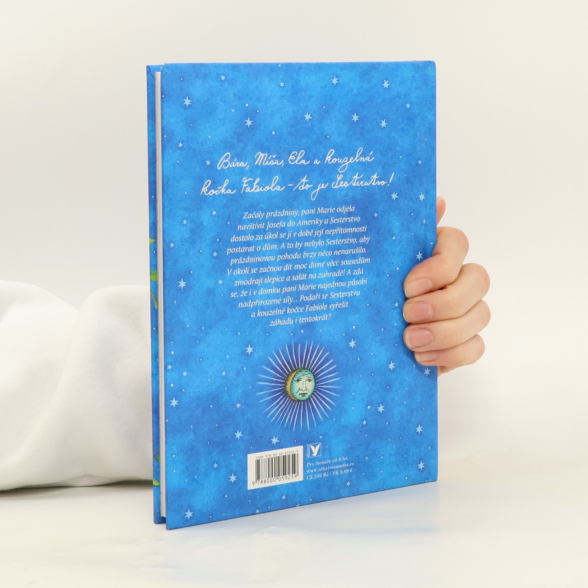Třetí, tentokrát prázdninové dobrodružství Sesterstva kouzelné kočky Fabioly! Začaly prázdniny, paní Marie odjela navštívit Josefa do Ameriky a Sesterstvo dostalo za úkol se jí v době její nepřítomnosti postarat o dům a kočku Fabiolu. A to by nebylo Sesterstvo, aby prázdninovou pohodu brzy něco nenarušilo. V okolí se začnou dít moc divné věci: sousedům zmodrají slepice a salát na zahradě! A zdá se, že i v domku paní Marie najednou působí nadpřirozené síly... Podaří se Sesterstvu a kouzelné kočce Fabiole vyřešit záhadu i tentokrát?