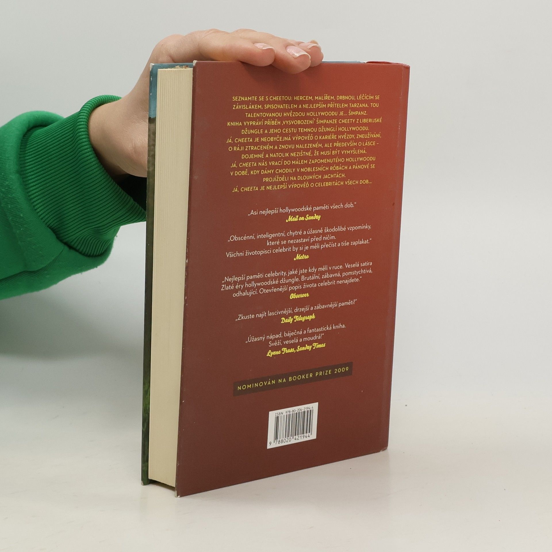 Hollywood očima nejlepšího herce všech dob. Nejznámější opičí herec světa šimpanz Cheeta sepsal vzpomínky na svou hereckou kariéru v Hollywoodu, kde se objevil ve více než padesáti filmech (Chtěl jsem točit dál, protože jsem nehodlal skončit v laboratoři s elektrodami na hlavě.), prozradí tajemství své dlouhověkosti (Denně hamburgery, čerstvé ovoce, zelenina a kola bez cukru. Mám totiž cukrovku.), přizná se k těžkému boji se závislostí na alkoholu a cigaretách, ale především čtenáře provede zlatou érou amerického filmu. Vtipné a pronikavé pohledy do filmařského zákulisí a hereckého života. Z této perspektivy ještě nikdy nikdo filmový průmysl nepopsal.