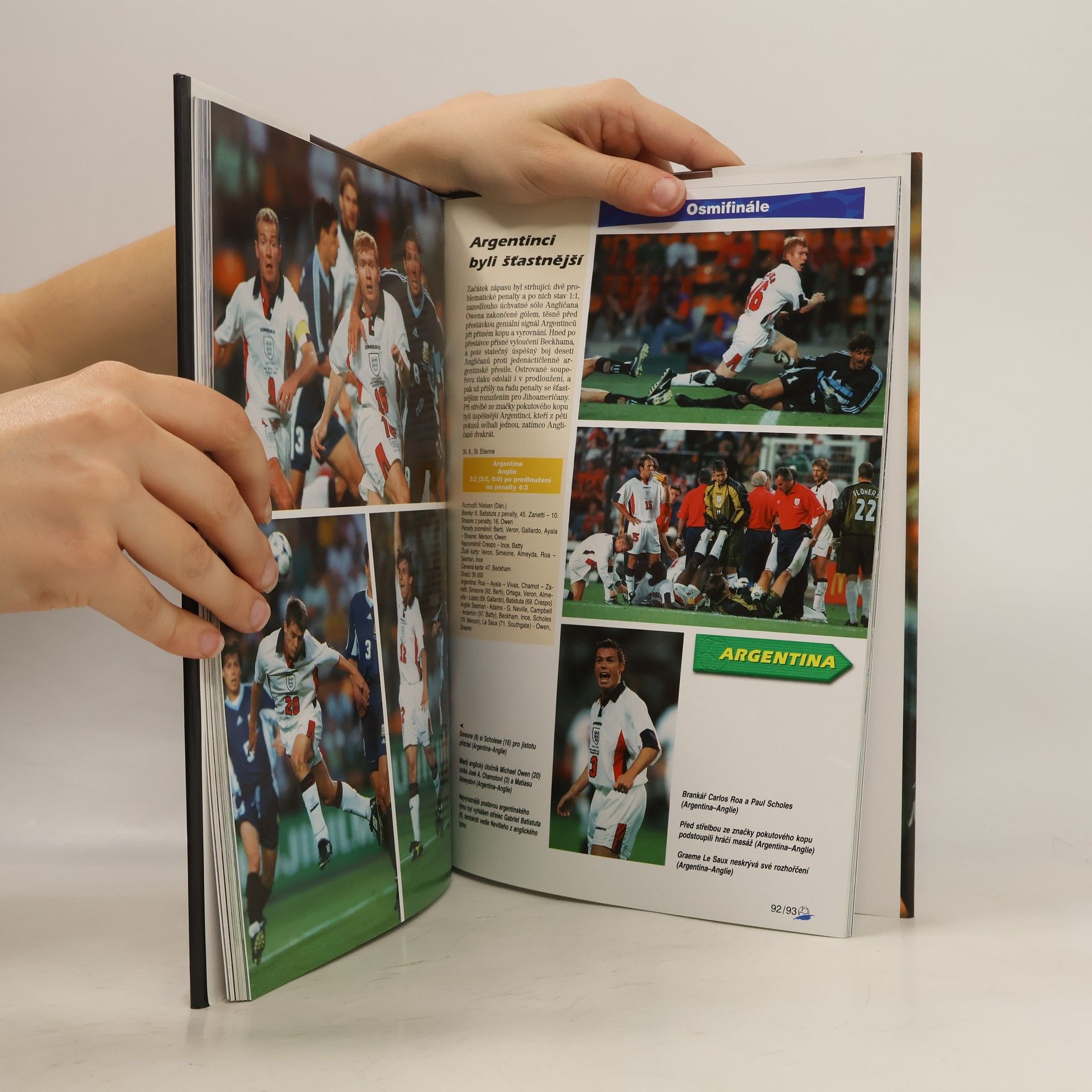 Sportovní monografie přibližuje průběh sportovních bojů na nedávno ukončeném XVI. MS v kopané ve Francii.
