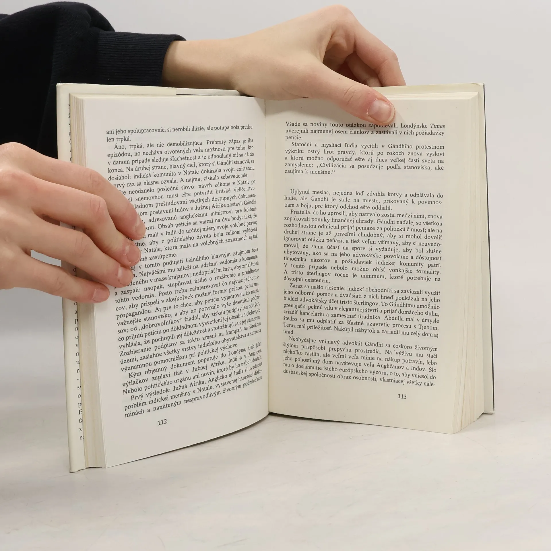 Životopis indického politika je napsán s obdivem a úctou k této pozoruhodné osobnosti 20. stol. Obsah: Životopisná kniha o Mohandásovi Gándhím. Kapitoly: Mladosť /1869-1893/-Pozadie, Roky v Rádžkóte, Vegetarián v Londýne. Južná Afrika /1893-1914/-Noc v Maritzburgu, Politický začiatok, Búrska vojna, Johannesburg a Phoenix, Skúsenosť so satjágrahou, Víťazstvo a návrat. India /1915-1948/-Sily na bojisku, Tri bitky za robotníkov, Krvipreliatie a Amritsare, Rok 1921, Nejednota, Soľný pochod, Dillíjsky pakt a londýnska konferencia, Pre "dietky božie", "Quit India!", Krvavý predvečer, "He, Ráma!" Cena knihy v čase vydania: 45.- Kčs.