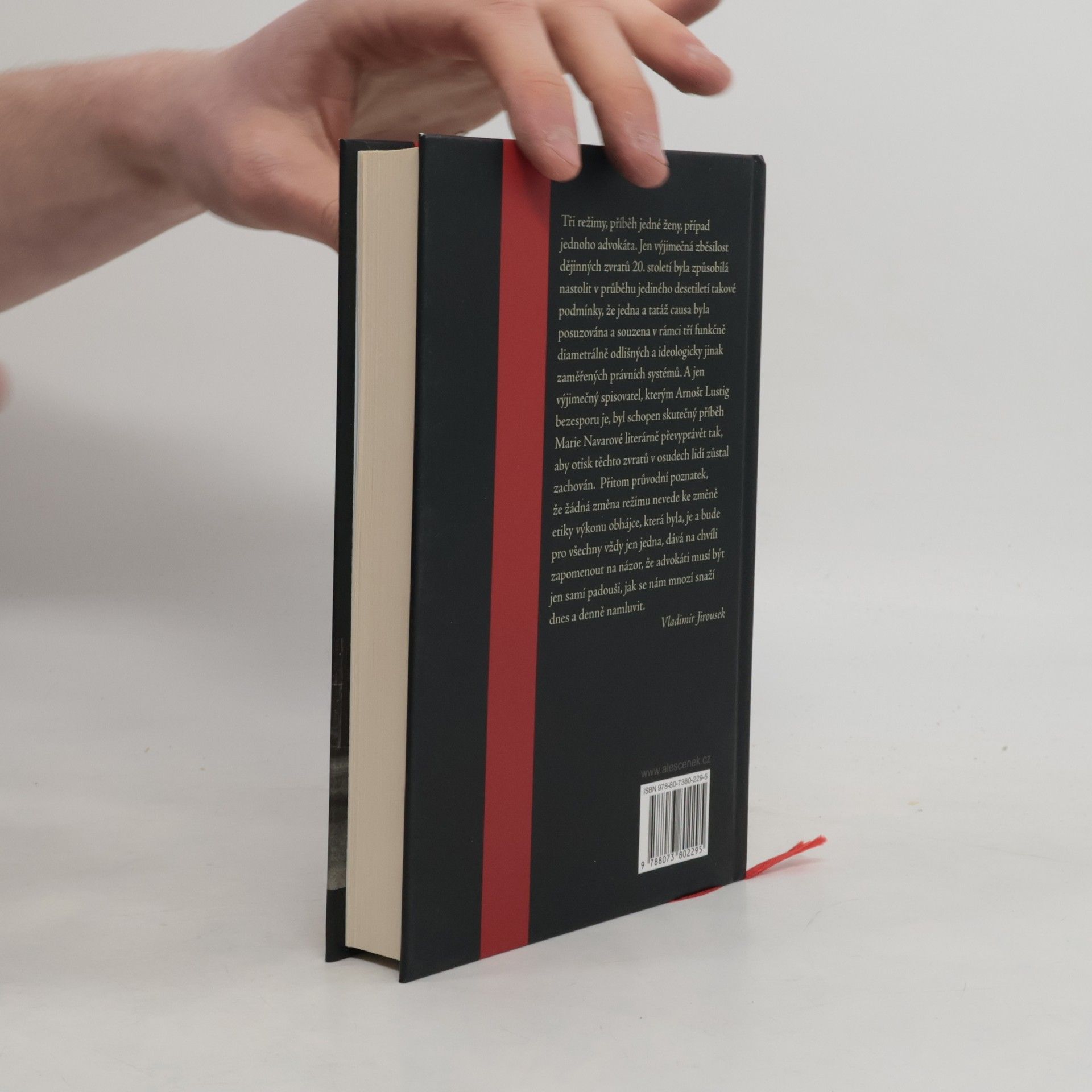 Tři režimy, příběh jedné ženy, případ jednoho advokáta. Jen výjimečná zběsilost dějinných zvratů 20. století byla způsobilá nastolit v průběhu jediného desetiletí takové podmínky, že jedna a tatáž causa byla posuzována a souzena v rámci tří funkčně diametrálně odlišných a ideologicky jinak zaměřených právních systémů. A jen výjimečný spisovatel, kterým Arnošt Lustig bezesporu je, byl schopen skutečný příběh Marie Navarové literárně převyprávět tak, aby otisk těchto zvratů v osudech lidí zůstal zachován. Přitom průvodní poznatek, že žádná změna režimu nevede ke změně etiky výkonu obhájce, která byla, je a bude pro všechny vždy jen jedna, dává na chvíli zapomenout na názor, že advokáti musí být jen samí padouši, jak se nám mnozí snaží dnes a denně namluvit.