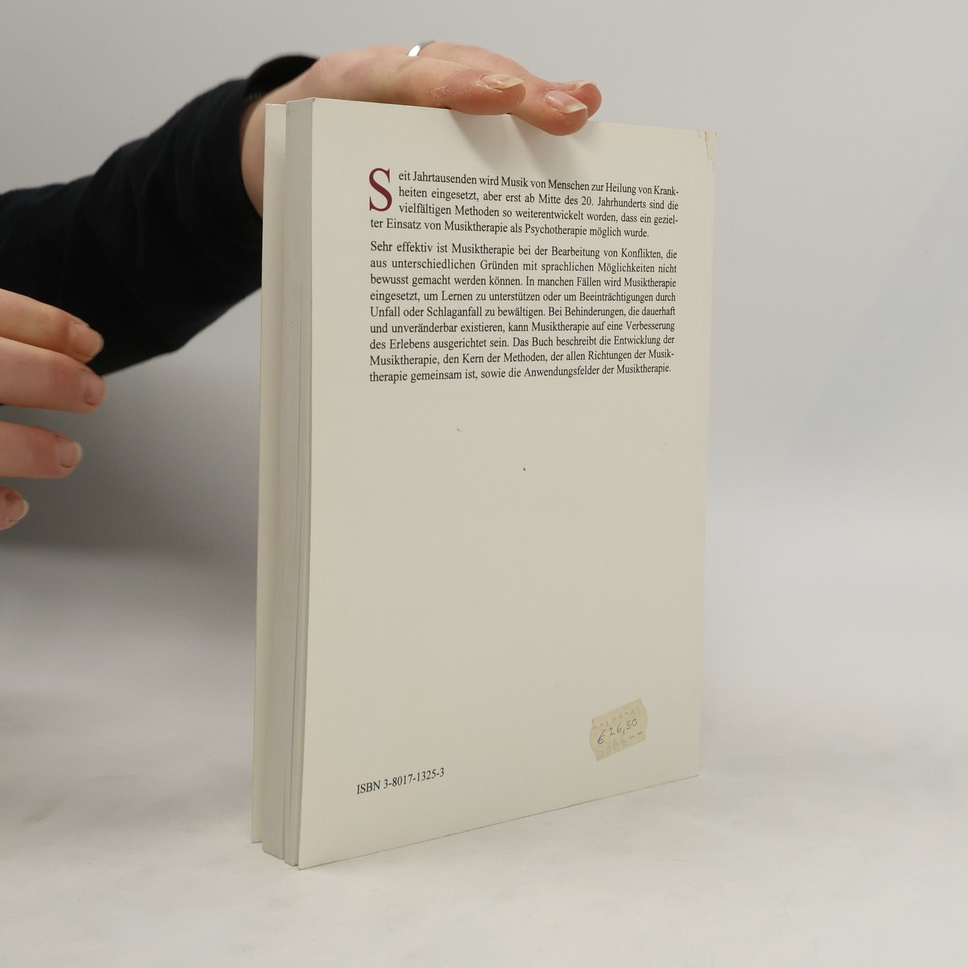 Seit Jahrtausenden wird Musik von Menschen zur Heilung von Krankheiten eingesetzt, aber erst ab Mitte des 20. Jahrhunderts sind die vielfältigen Methoden so weiterentwickelt worden, dass ein gezielter Einsatz von Musiktherapie als Psychotherapie möglich wurde. Sehr effektiv ist Musiktherapie bei der Bearbeitung von Konflikten, die aus unterschiedlichen Gründen mit sprachlichen Möglichkeiten nicht bewusst gemacht werden können. In manchen Fällen wird Musiktherapie eingesetzt, um Lernen zu unterstützen oder um Beeinträchtigungen durch Unfall oder Schlaganfall zu bewältigen. Bei Behinderungen, die dauerhaft und unveränderbar existieren, kann Musiktherapie auf eine Verbesserung des Erlebens ausgerichtet sein. Das Buch beschreibt die Entwicklung der Musiktherapie, den Kern der Methoden, der allen Richtungen der Musiktherapie gemeinsam ist, sowie die Anwendungsfelder der Musiktherapie.