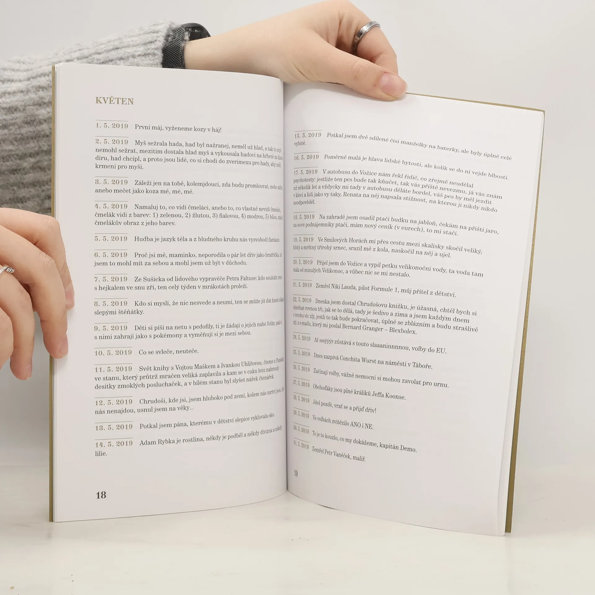 Denní záznamy Chrudoše Valouška se týkají jak všedních postřehů, tak i úvah o umění, především o tom výtvarném. Ale nalezneme tu také třeba účast na pozorování zatmění Měsíce, zmínku o krmení kačen a kačerů ve Stromovce čokoládou Milka nebo až kafkovský sen, v němž se autor promění v červa a kutálí si s ním chlupatá tarantulí samice.