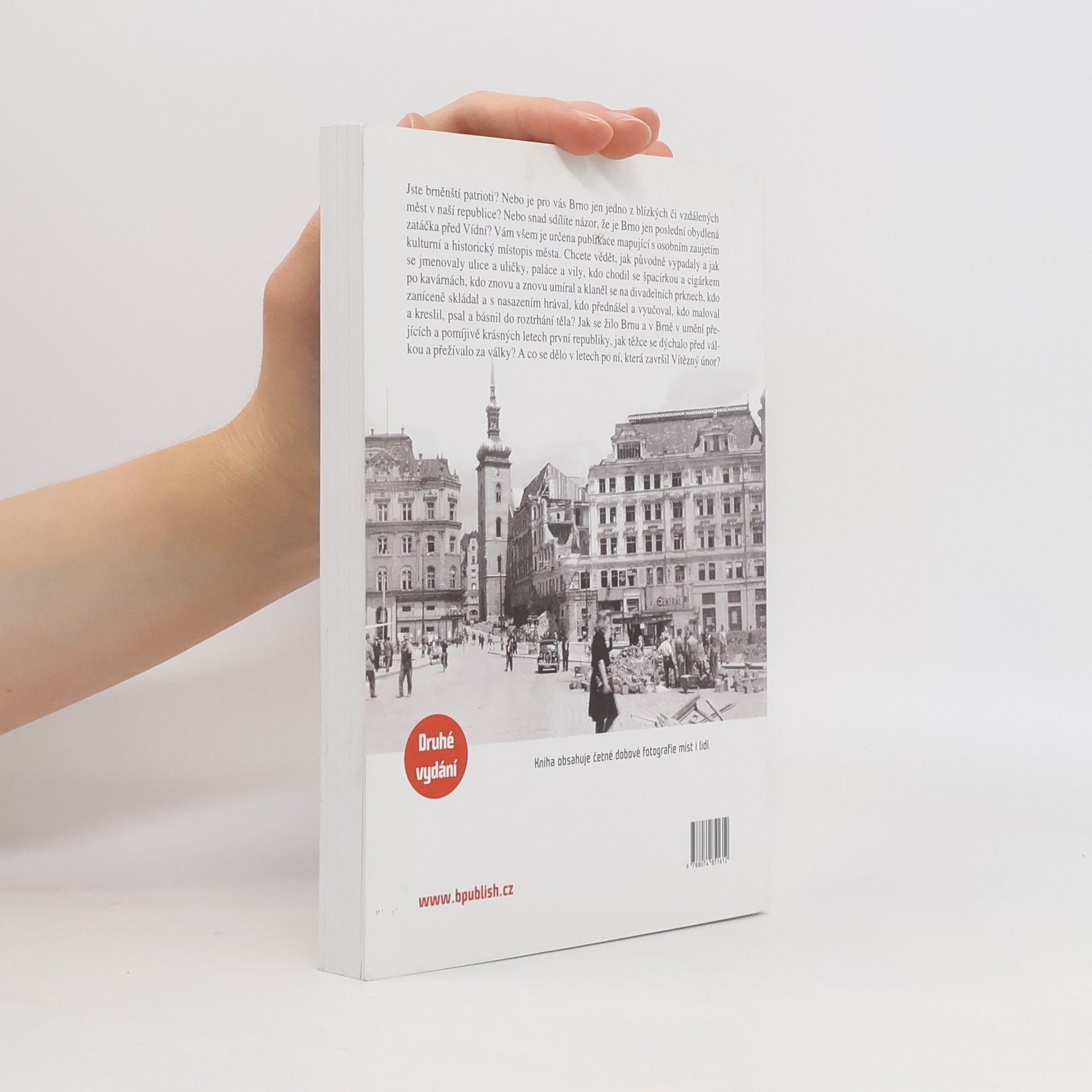 O divadle, literatuře, výtvarném umění a významných osobnostech univerzity v letech 1928–1948. Jste brněnští patrioti? Nebo je pro vás Brno jen jedno z blízkých či vzdálených měst v naší republice? Nebo snad sdílíte názor, že je Brno jen poslední obydlená zatáčka před Vídní? Vám všem je určena publikace mapující s osobním zaujetím kulturní a historický místopis nejen milovaného rodného města. Chcete vědět, jak původně vypadaly a jmenovaly se ulice a uličky, paláce a vily, kdo chodil se špacírkou a cigárkem po kavárnách, kdo znovu a znovu umíral a klaněl se na divadelních prknech, kdo zaníceně skládal a s nasazením vyhrával, kdo přednášel a vyučoval, kdo maloval a kreslil, psal a básnil do roztrhání těla? Jak se žilo Brnu a v Brně v umění přejících a pomíjivě krásných letech první republiky, jak těžce se dýchalo před válkou a přežívalo za války. A co se dělo v letech po ní, která završil Vítězný únor. Obrazy doby dokládají četné cenné dobové fotografie míst i lidí.