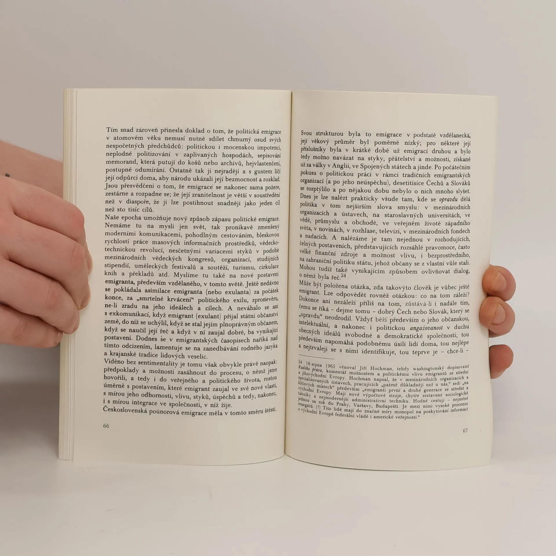 Kniha Pavla Tigrida vyšla poprvé v exilovém nakladatelství INDEX v roce 1974. Autor v ní mapuje jednak československou politickou emigraci po únoru 1948, její vznik, složení a aktivity, jednak emigraci po srpnu 1968. Uvažuje také o praktických politických vyhlídkách naší emigrace – vyhlídkách, které se naplnily patnáct let po napsání knihy.... celý text