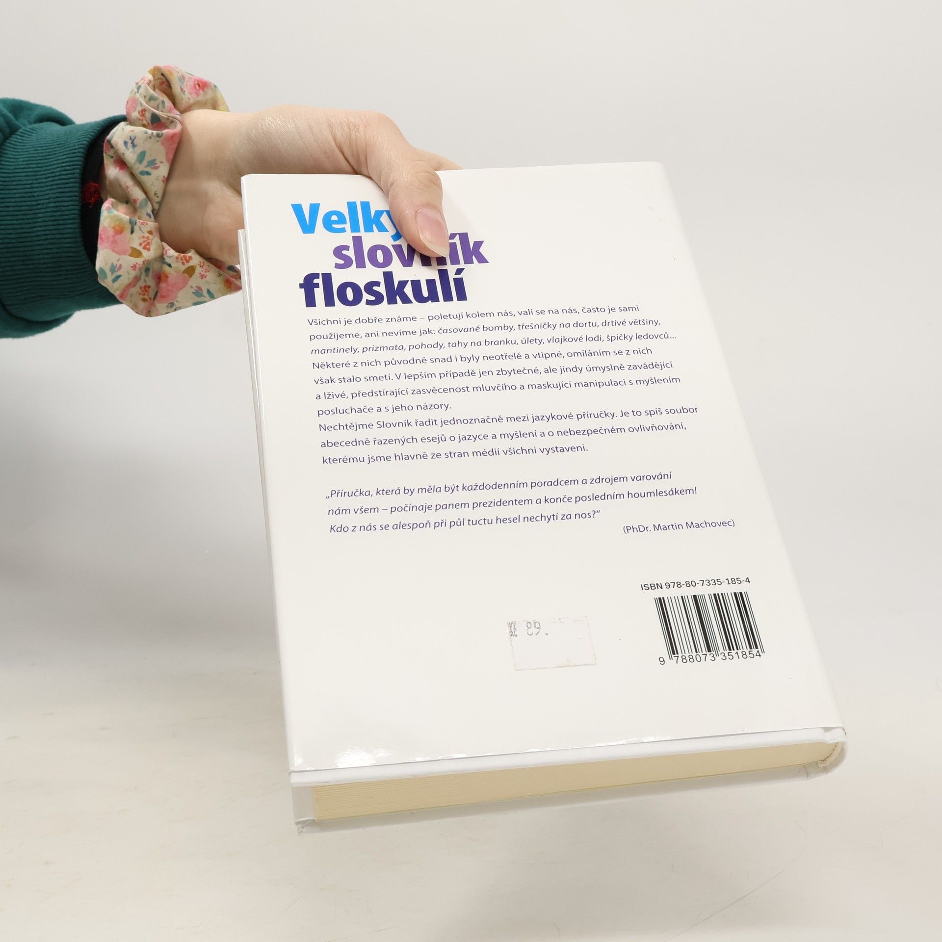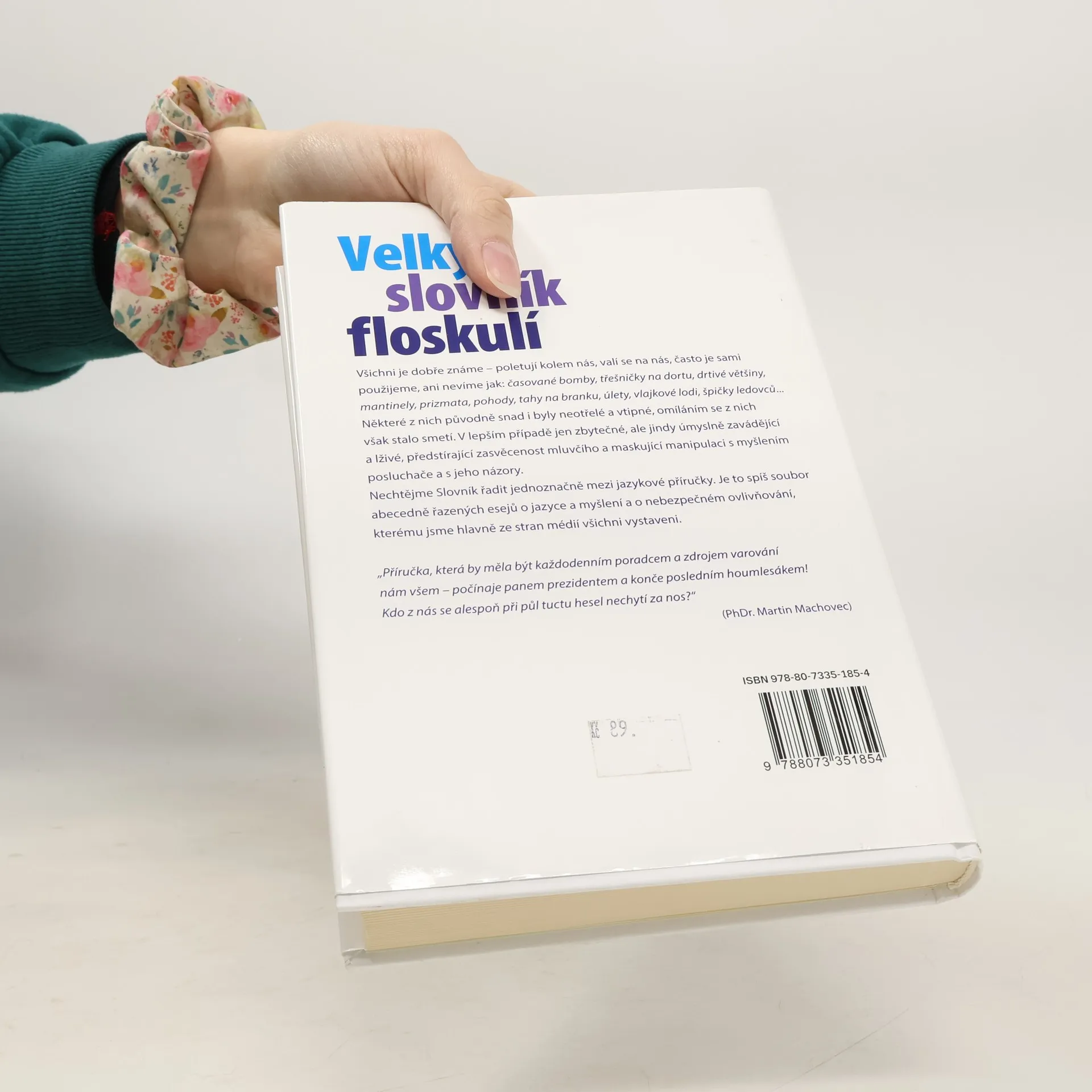 Všichni je dobře známe – poletují kolem nás, valí se na nás, často je sami použijeme, ani nevíme jak: časované bomby, třešničky na dortu, drtivé většiny, mantinely, prizmata, pohody, tahy na branku, úlety, vlajkové lodi, špičky ledovců... Některé z nich původně snad i byly neotřelé a vtipné, omíláním se z nich však stalo smetí. V lepším případě jen zbytečné, ale jindy úmyslně zavádějící a lživé, předstírající zasvěcenost mluvčího a maskující manipulaci s myšlením posluchače a s jeho názory. Nechtějme Slovník řadit jednoznačně mezi jazykové příručky. Je to spíš soubor abecedně řazených esejů o jazyce a myšlení a o nebezpečném ovlivňování, kterému jsme hlavně ze stran médií všichni vystaveni. „Příručka, která by měla být každodenním poradcem a zdrojem varování nám všem – počínaje panem prezidentem a konče posledním houmlesákem! Kdo z nás se alespoň při půl tuctu hesel nechytí za nos?“