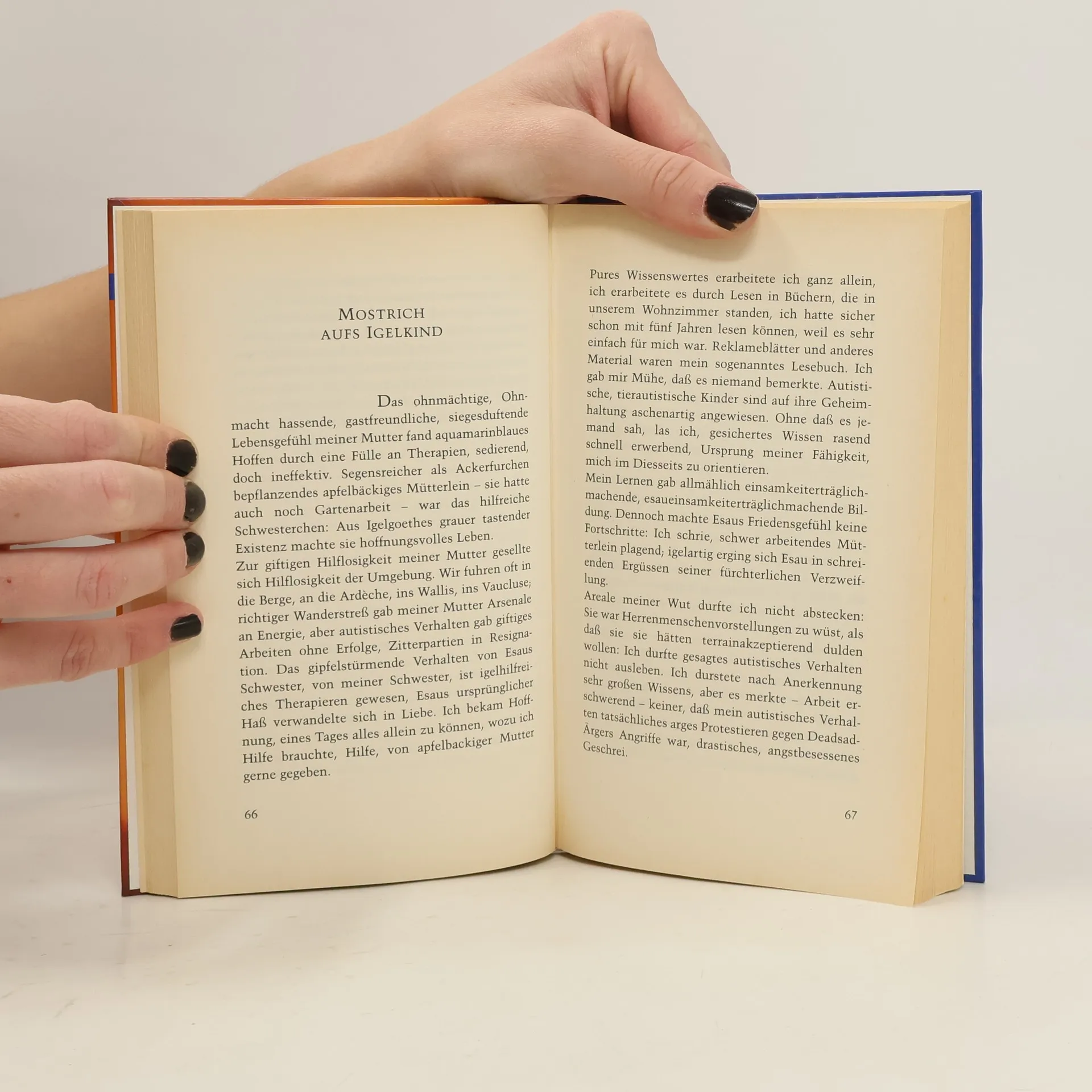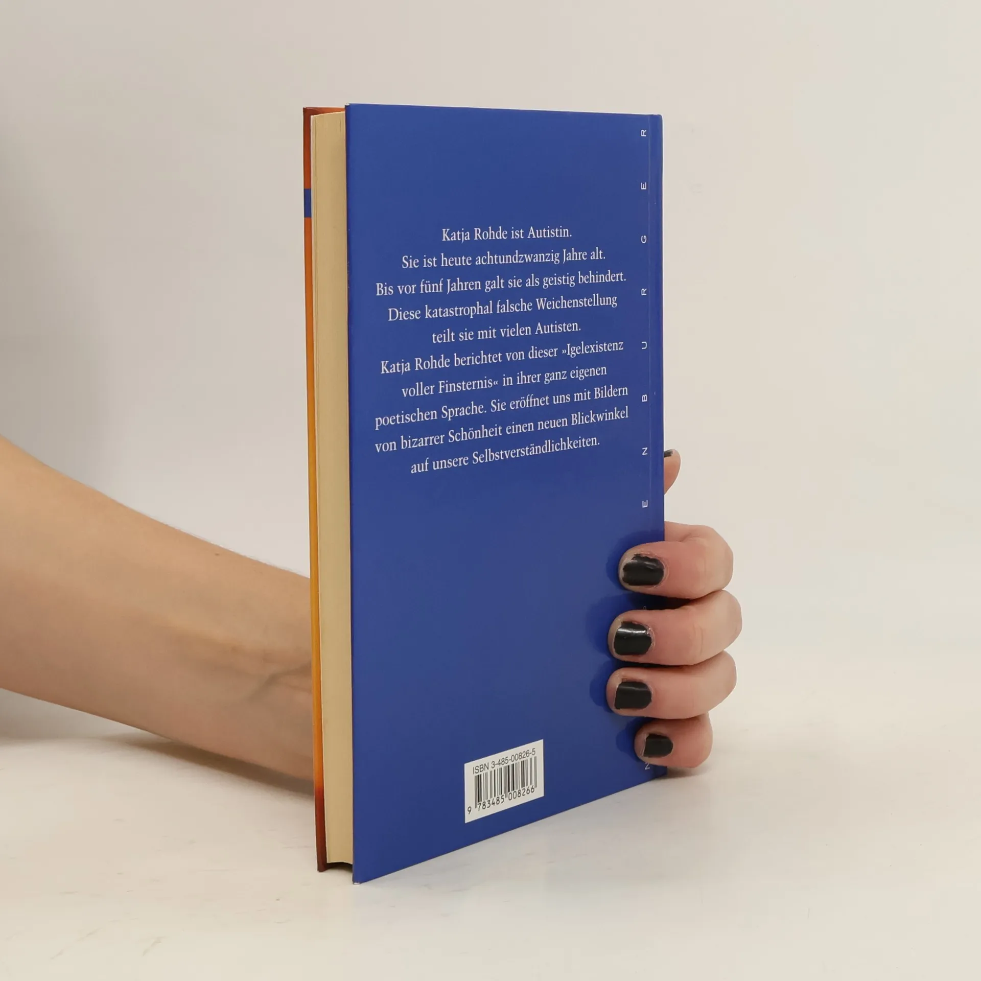 Katja Rohde ist Autistin. Sie ist heute achtundzwanzig Jahre alt. Bis vor 5 Jahren galt sie als geistig behindert. Diese katastrophal falsche Weichenstellung teilt sie mit vielen Autisten. Katja Rohde berichtet von dieser "Igelexistenz voller Finsternis" in Bildern von bizarrer Schönheit und eröffnet uns damit einen neuen Blickwinkel auf unsere Selbstverständlichkeiten. Die gestützte Kommunikation (FC), bei der zunächst die Hand, inzwischen nur noch der Unterarm gestützt wird, ist für Katja Rohde die einzige Möglichkeit, sich mitzuteilen. In ihrer ganz eigenen poetisch-bildhaften Sprache berichtet Katja Rohde von ihrer autistischen Welt, ihren Empfindungen, ihren Qualen und ihren Hoffnungen: "Champagnergrund war endlich gegeben, reines Freudenempfinden möglich. Ich freue mich riesig, über des dunklen Himmels Runzeln glänzt ohnegleichen ein Lüftchen provenzalischer Bläue. In meiner Seele herrschen nicht mehr Angst und Hilflosigkeit, sondern Dankbarkeit und Zuversicht. Unintelligenz wird mir bald nicht mehr nachgesagt werden können." Im ersten Teil des Buchs beschreibt Ulla Rohde ihre Empfindungen als Mutter, ihr oft sehr schwieriges Leben mit Katja und den spannenden Prozess und die Freuden, die das neue Kennenlernen bietet.
