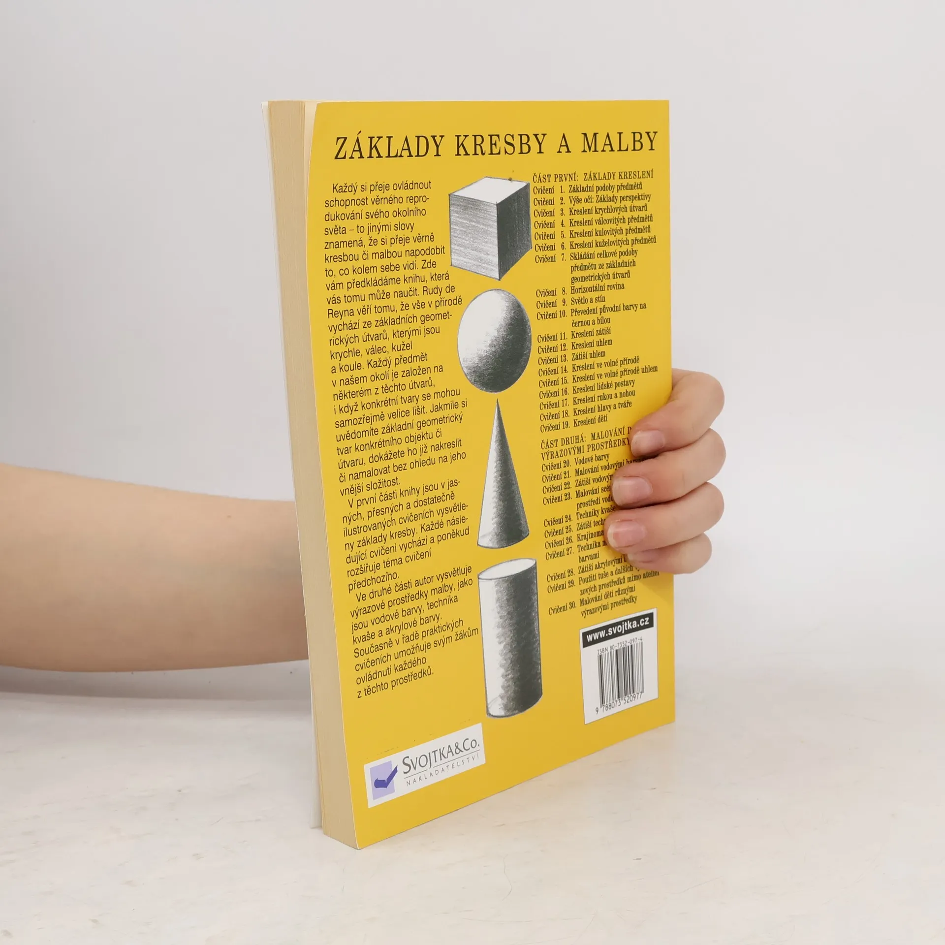 V první části knihy jsou v jasných, přesných a dostatečně ilustrovaných cvičení vysvětleny základy kresby. Ve druhé části autor vysvětluje výrazové prostředky malby, jako jsou vodové barvy, technika kvaše a akrylové barvy. Současně v řadě praktických cvičení umožňuje svým žákům ovládnutí každého z těchto prostředků.