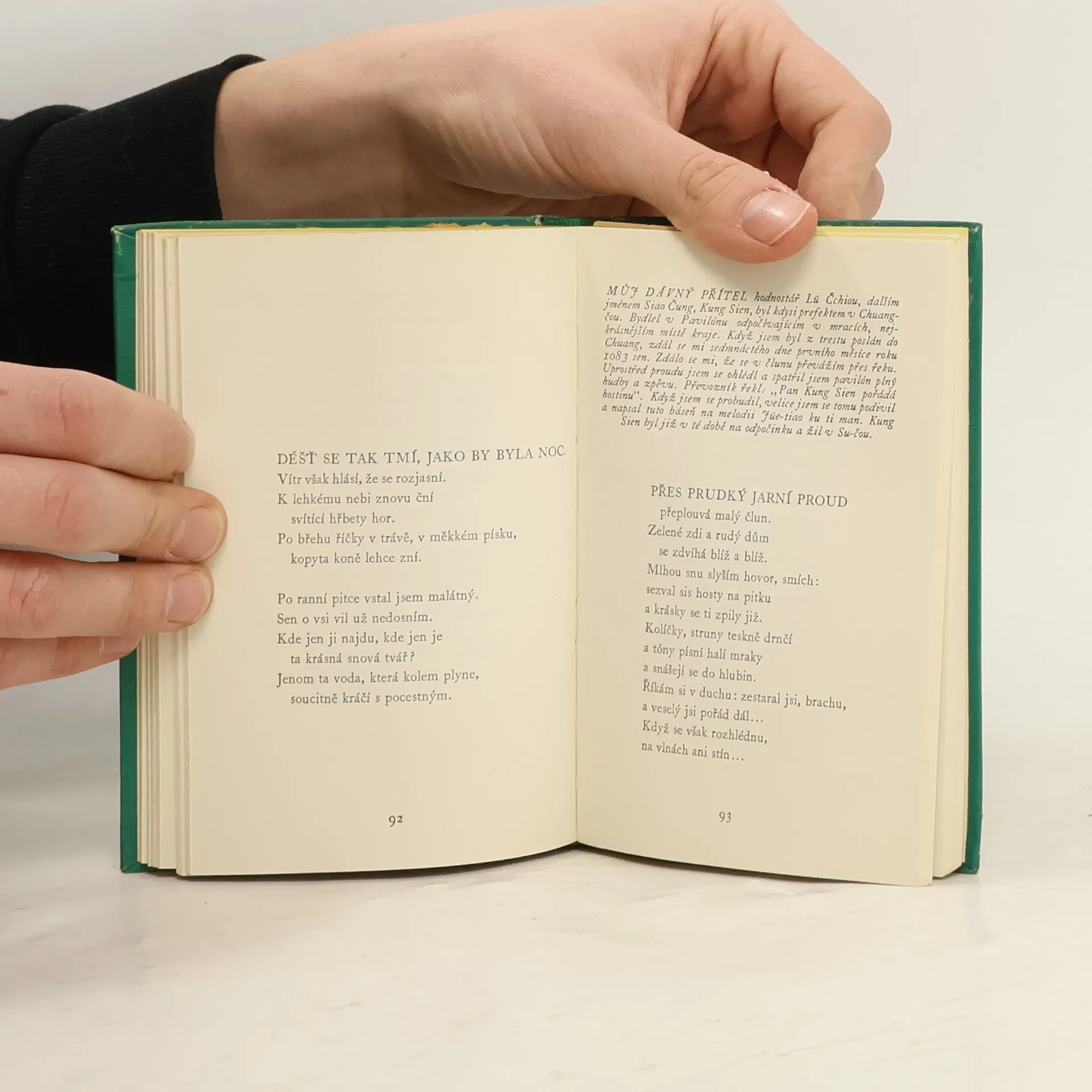 Podnázev: Devět básníků ze staré Číny. - Na obálce název: Jara a podzimy staré Číny. - Antologie veršů nejvýraznějších představitelů písňové formy typické pro starou čínskou poezii, těsně sepjatou s hudbou. Vyjadřuje milostné city, smutek touhy a rozloučení, radost z přátelskýchpitek i jemné přírodní nálady. Protože je kniha i vývojovým průřezem písňové formy, zachycuje i náměty hluboké reflexe nad osudem říše, ztraceným domovem i nad smyslem celého života.
