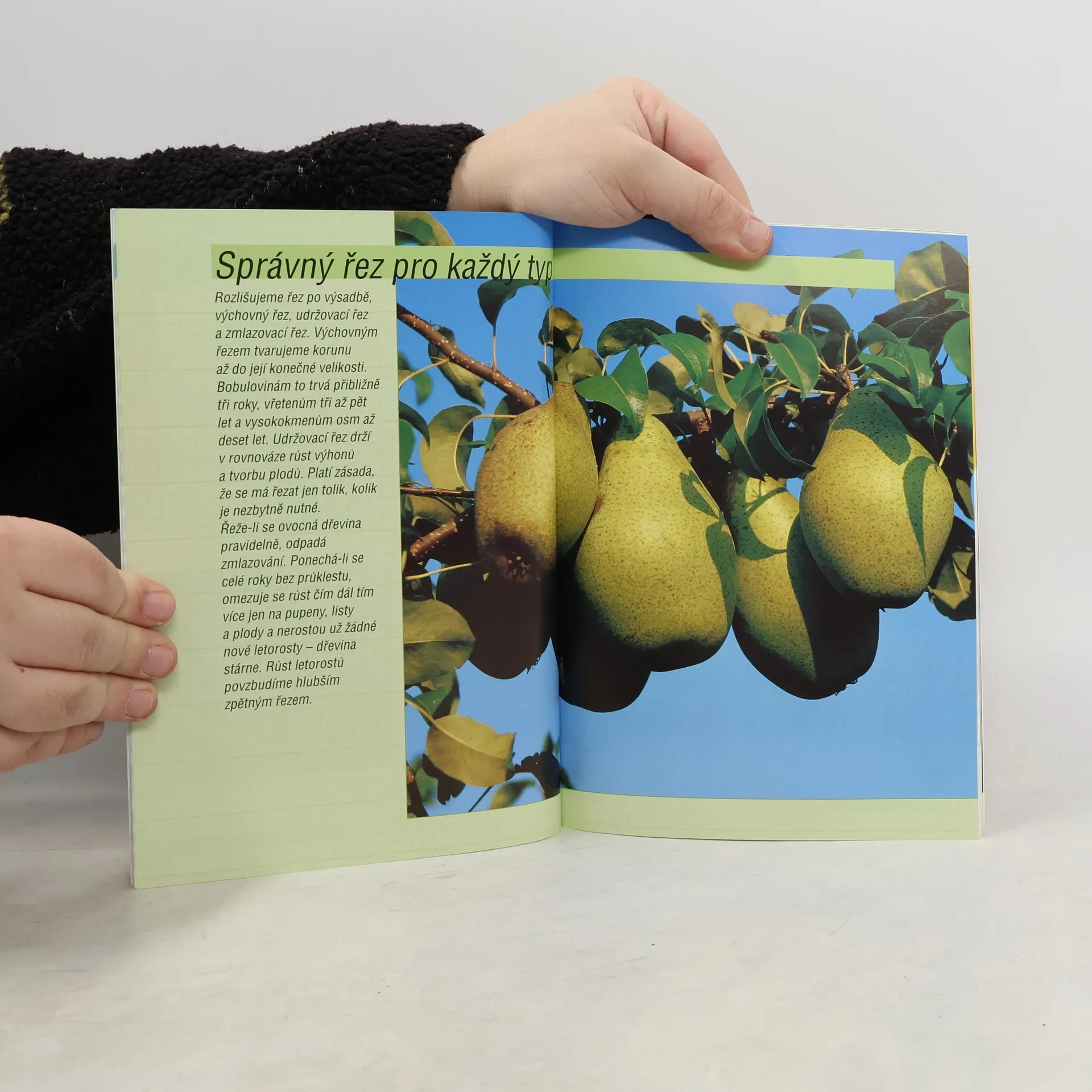 Praktická příručka názorně popisuje řez ovocných stromů a keřů. Po všeobecných zásadách a pravidlech řezu a výběru potřebného pracovního nářadí se věnuje podrobnému a názornému řezu a postupnému tvarování ovocných stromů a keřů (vysoký kmen, talířovitá koruna, zmlazování atd.) Samostatné kapitoly jsou věnovány výsadbě a řezu borůvek, maliníku, ostružiníku, aktinidii (čnělkovec, kiwi) a révě vinné. Upozorňuje na časté chyby. Všechny postupy jsou předvedeny na názorných kresbách.