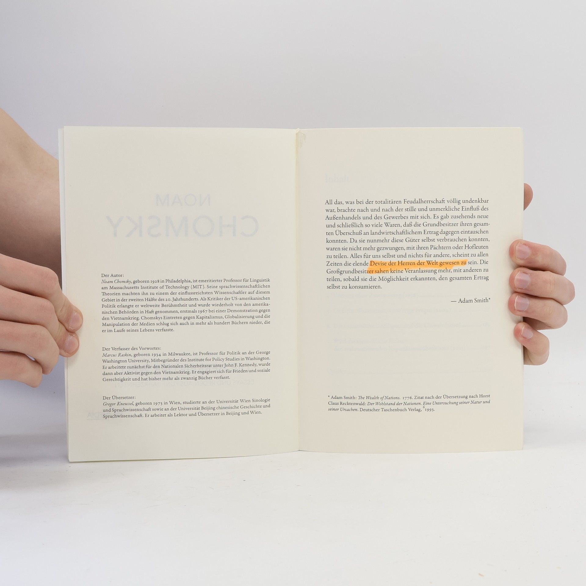 "Die Herren der Welt" versammelt zentrale Essays und Reden von Chomsky, die die Staatsmacht und ihre ideologischen Grundlagen vom Kalten Krieg bis zum Krieg gegen den Terror analysieren. Auch die internationale Gerichtsbarkeit wird als Mittel zur Aufrechterhaltung einer ungerechten Weltordnung thematisiert.