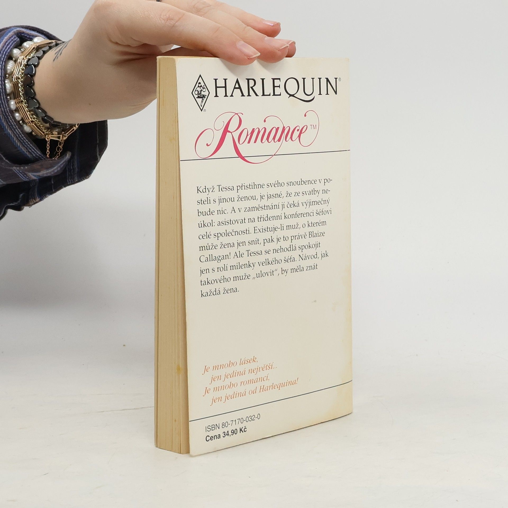 Když Tessa přistihne svého snoubence v posteli s jinou ženou, je jasné, že ze svatby nebude nic. A v zaměstnání ji čeká výjimečný úkol: asistovat na třídenní konferenci šéfovi celé společnosti. Existuje-li muž, o kterém může žena jen snít, pak je to právě Blaize Callagan! Ale tessa se nehodlá spokojit jen s rolí milenky velkého šéfa. Návod, jak takového muže "ulovit", by měla znát každá žena.