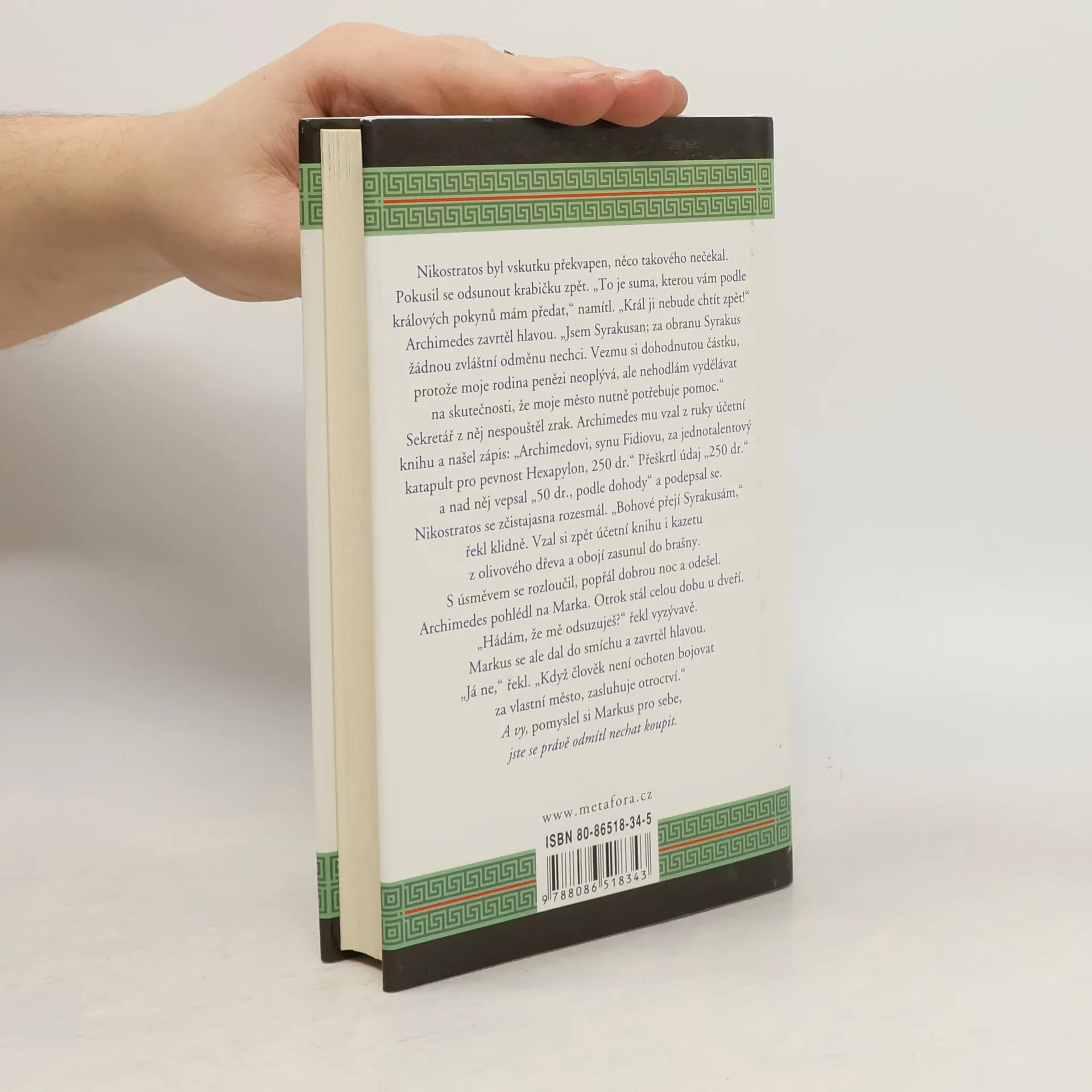 Každé dítě školou povinné ví, kdo byl Archimedes. Už málokdo však ví, kým vskutku byl, po čem toužil, koho miloval… Každý ví, jak zní Archimedův zákon, ale o mnoho víc toho o jeho tvůrci nevíme. A právě to přimělo renomovanou autorku historických románů Gillian Bradshawovou k zamyšlení nad tím, jaký člověk tenhle starověký vědec byl. Jaké měl mládí? Co všechno asi zažil? Jako odpověď na všechny tyto otázky, začíná se před čtenářem odvíjet příběh plný spletitých vztahů. Mladý Archimedes se po třech letech strávených na studiích v Alexandrii vrací do Syrakus. Nic dobrého jej tam ale nečeká: jeho otec je smrtelně nemocen a město pustošeno útoky římské armády. Archimedes dá všechny své vědomosti do služeb státu a svého panovníka a navrhne pro něj ten nejdrtivější katapult, jaký kdy lidská ruka vyrobila. Okusí slávu i prohru, válku, bohatství i zradu - nic jej však nezasáhne tolik, jako velkolepá a půvabná věda – matematika. Geniálního vědce nemine ovšem ani láska, hluboký vztah k dceři samotného krále...... celý text