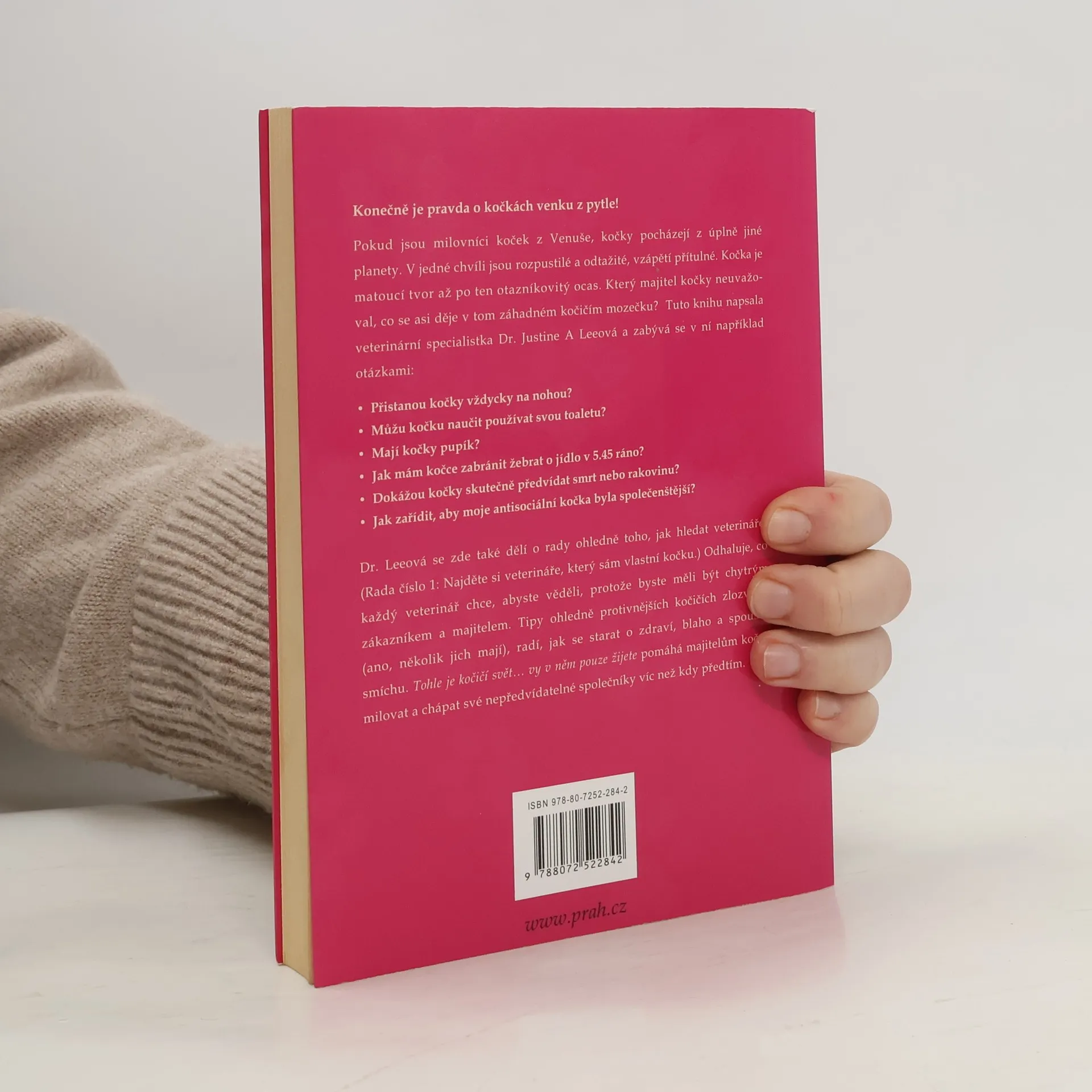 Všechno, co jste kdy chtěli vědět o své chlupaté kočičí šelmičce. Základní kniha pro všechny milovníky i chovatele koček. Žádná otázka nezůstane bez odpovědi. Jak kočky přemýšlí a co svým chováním vyjadřují? Co potřebují a co jim vadí. Jak je léčit? Dokážou předpovědět smrt nebo rakovinu? A mnoho dalšího. Dr. Leeová je uznávanou veterinářkou a specialistkou právě na kočičí plémě.