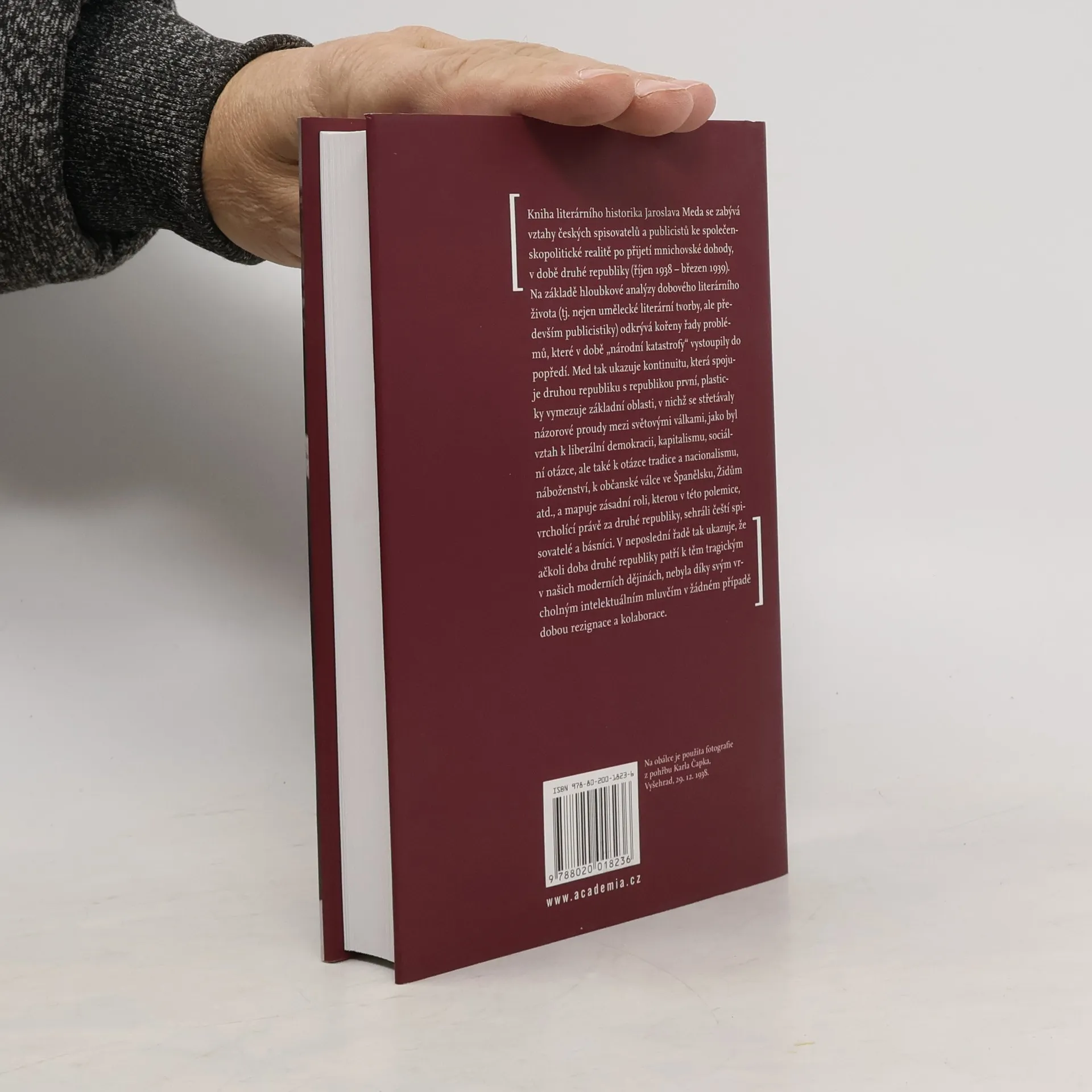Kniha literárního historika Jaroslava Meda se zabývá vztahy českých spisovatelů a publicistů ke společenskopolitické realitě po přijetí mnichovské dohody, v době druhé republiky (říjen 1938 – březen 1939). Na základě hloubkové analýzy dobového literárního života (tj. nejen umělecké literární tvorby, ale především publicistiky) odkrývá kořeny řady problémů, které v době „národní katastrofy“ vystoupily do popředí. Med tak ukazuje kontinuitu, která spojuje druhou republiku s republikou první, plasticky vymezuje základní oblasti, v nichž se střetávaly názorové proudy mezi světovými válkami, jako byl vztah k liberální demokracii, kapitalismu, sociální otázce, ale také k otázce tradice a nacionalismu, náboženství, k občanské válce ve Španělsku, Židům atd., a mapuje zásadní roli, kterou v této polemice, vrcholící právě za druhé republiky, sehráli čeští spisovatelé a básníci. V neposlední řadě tak ukazuje, že ačkoli doba druhé republiky patří k těm tragickým v našich moderních dějinách, nebyla díky svým vrcholným intelektuálním mluvčím v žádném případě dobou rezignace a kolaborace.