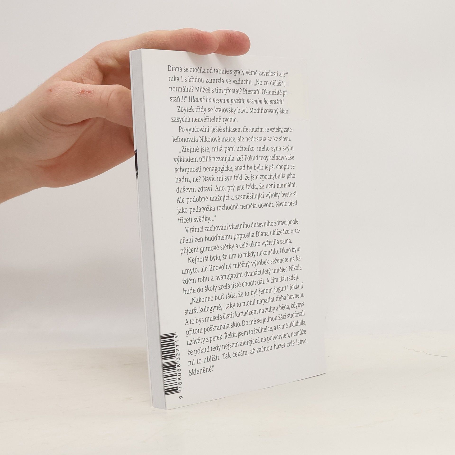 Je česká učitelka na zabití? Jak se projevuje takzvaná teenagefobie? Proč se vyplatí nad propastí zavřít oči? Naše stále dokonalejší a alternativnější školství je nekonečným zdrojem překvapení. S Dianou nezavítáte do Školy na výsluní, ale poznáte, jaké to je doopravdy balancovat v každodenní učitelské praxi na hraně slušnosti i zákona. Diana je bojovnice na život a na smrt, bojuje nejen o práci, ale také o lásku. Té má na rozdávání, ale najít pořádného chlapa je jako trefit jackpot. Diana to nikdy nevzdá, přesto nakonec prohraje. Anebo možná ne.