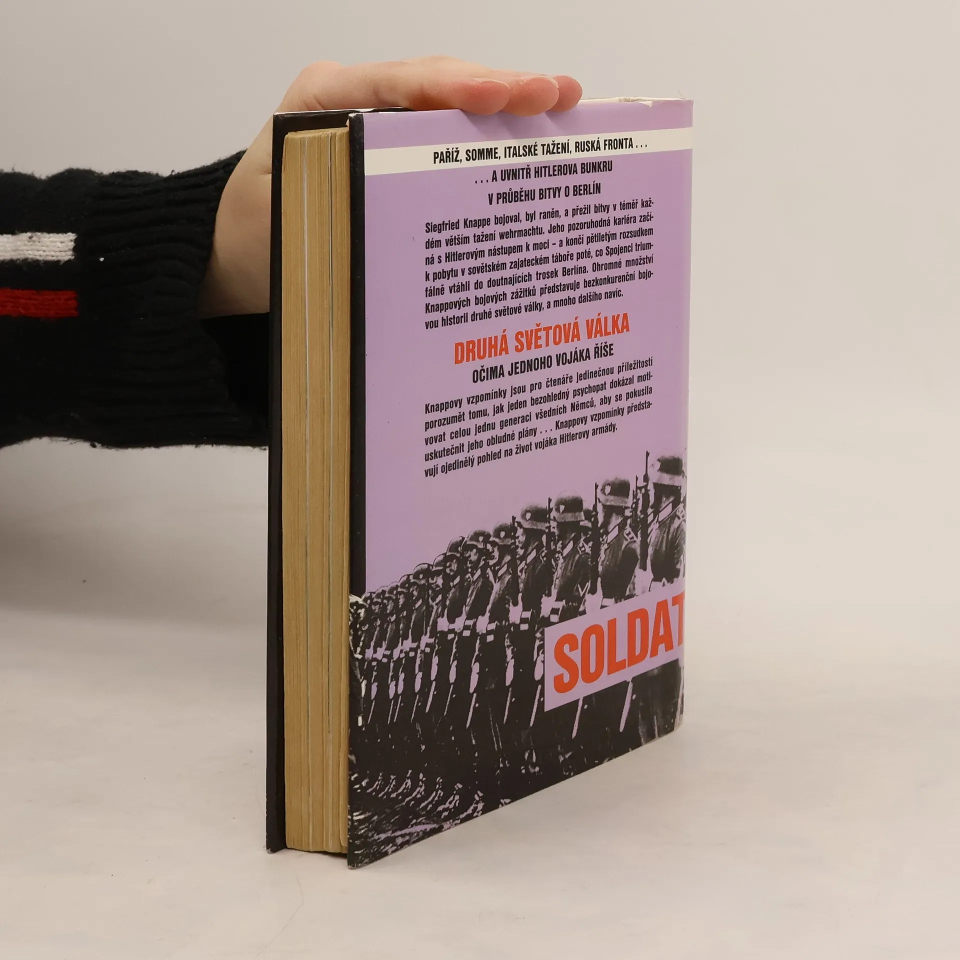 Soldat (v novějších vydáních VOJÁK) je nevšedně hloubavá vzpomínková kniha německého důstojníka, který sloužil doslova na všech frontách Evropy. Nabíjí unikátní a zasvěcený pohled na druhou světovou válku z německé strany a na svět v troskách, který po sobě zanechala. Z pohledu historie války je Voják bohatým nalezištěm cenných poznatků, a to díky očitým svědectvím Siegfrieda Knappeho, který byl účastníkem mnoha významných a rozhodujících tažení, včetně zoufale odhodlané obrany Berlína, kde mu jeho role posledního operačního důstojníka velela pohybovat se mezi bojovou linií, Hitlerovým velitelstvím armády a bunkrem kancléřství. Podobně cenný je Knappeho popis prvních dnů Operace Barbarosa a jeho zkušeností frontového vojáka v průběhu invaze do Ruska. Nejsou to však pouze popisy bezprostředních válečných zážitků, které činí Vojáka přitažlivým čtením. V Siegfriedu Knappem potkáváme všedního člověka, poslučného vojáka, dobrého a slušného muže dostáváme tak vzácnou příležitost pochopit, jak Hitler motivoval celou jednu generaci k tomu, aby vykonala jeho monstrózní plán. Po vylíčení pěti nekonečných let v sovětském zajateckém táboře končí Knappeho autobiografické vzpomínání popisem pohnutého shledání s jeho ženou a dětmi. Po propuštění ze zajetí v Sovětském svazu vedla Knappeho cesta nejdříve do západního Německa a odtud potom do Spojených států amerických.