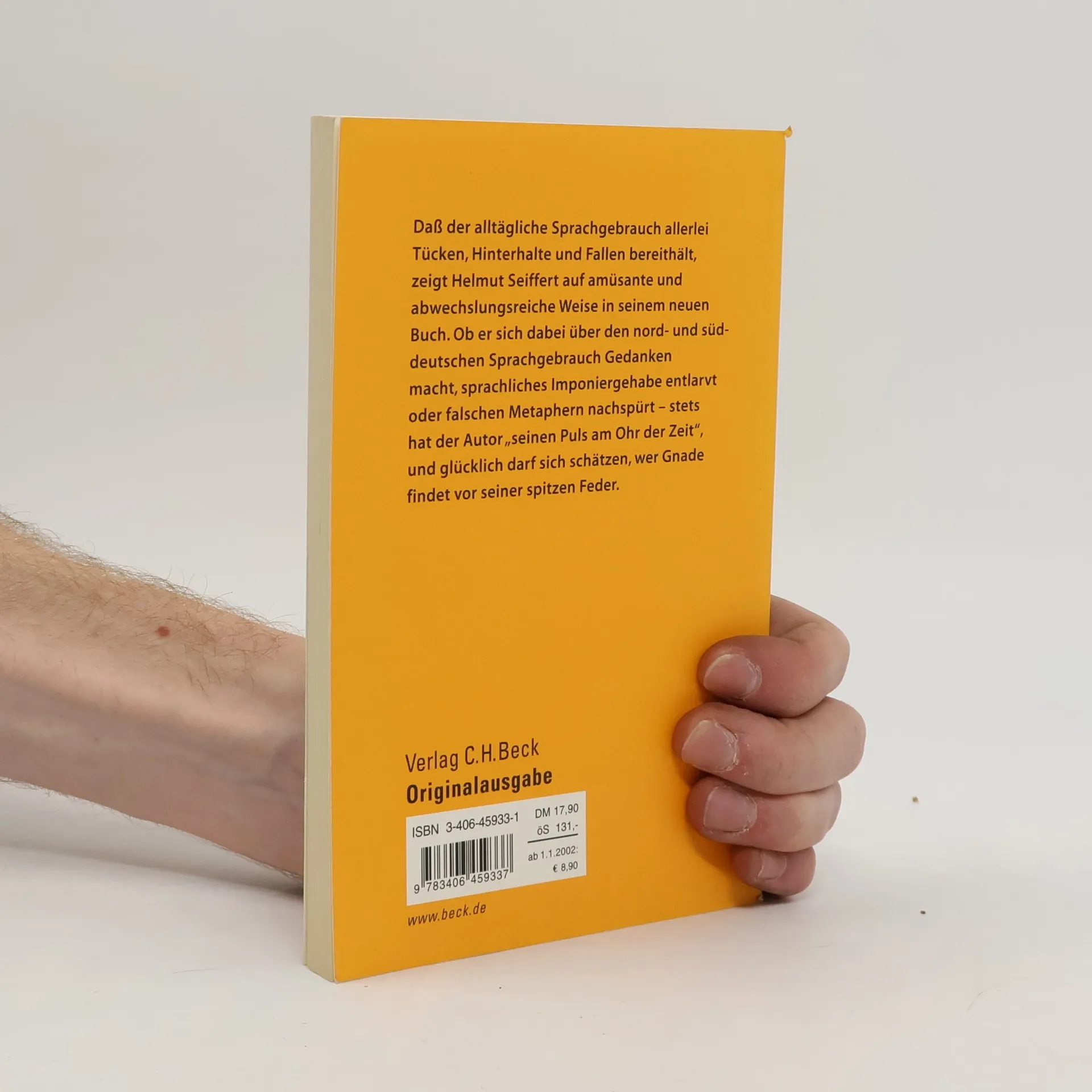 Daß der alltägliche Sprachgebrauch allerlei Tücken, Hinterhalte und Fallen bereithält, zeigt Helmut Seiffert auf amüsante und abwechslungsreiche Weise in seinem neuen Buch. Ob er sich dabei über den nord- und süddeutschen Sprachgebrauch Gedanken macht, sprachliches Imponiergehabe entlarvt oder falschen Metaphern nachspürt - stets hat der Autor "seinen Puls am Ohr der Zeit", und glücklich darf sich schätzen, wer Gnade findet vor seiner spitzen Feder.