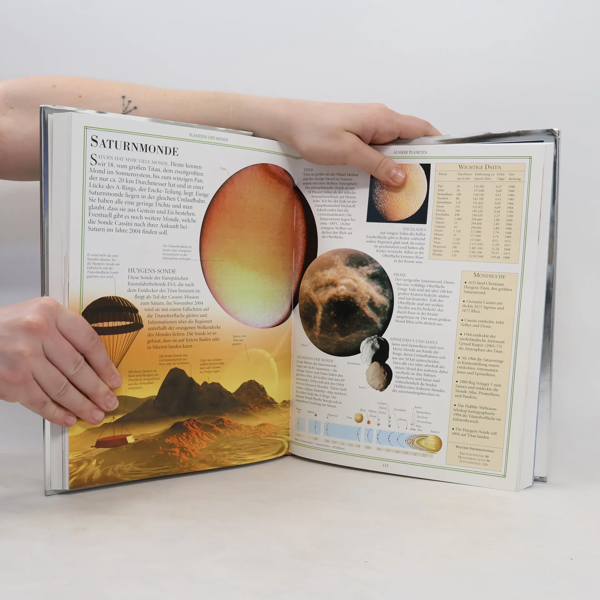 Dieses umfassende Nachschlagewerk für Kinder und Jugendliche vermittelt anschaulich die heutigen Kenntnisse der Astronomie und Kosmologie und nimmt den Leser mit auf eine abenteuerliche Reise: von der Geburt der Sterne, über die Jagd nach Schwarzen Löchern, Beobachtungen mit Gravitationslinsen bis hin zu aktuellen Versuchen, dem Urknall auf die Spur zu kommen. Außerdem enthält es ein umfangreiches Kapitel mit Tipps für eigene astronomische Beobachtungen. Und sollte der Himmel mal bewölkt sein, so versetzt dieses Buch mit über 1000 Farbfotografien und sensationellen Aufnahmen vom Weltraumteleskop Hubble jeden Betrachter in Staunen. Ab 10 Jahren