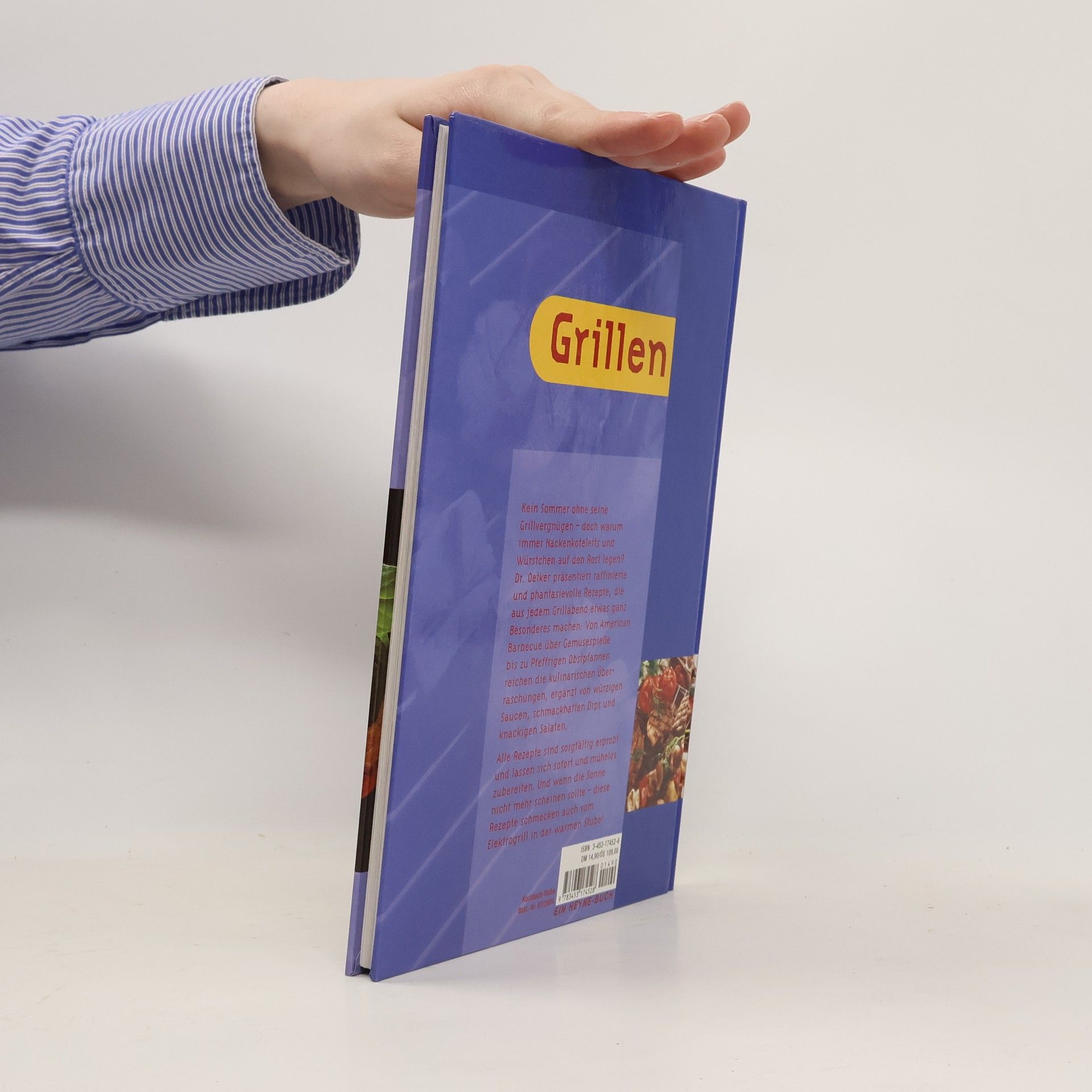 Die Vielfalt und Fantasie, mit denen Köche heutzutage ihre Rezepte ausgestalten, macht auch vor den Grillrezepten nicht Halt, bester Beweis: das Dr. Oetker Kochbuch Grillen. Im handlichen Format (24x18 cm) warten über 70 Rezepte auf Kochbegeisterte und solche, die es werden wollen. Bratwurst-Champignon-Spieße, Schafskäse-Pfännchen, Perlhuhn mit Tomaten -- von Fleisch über Fisch, Gemüse, Salate, Dips und Saucen: hier findet unter Garantie jeder seinen persönlichen Gaumenkitzel. (Und falls Sie dennoch unentschlossen sind, probieren Sie Saté mit Erdnuss-Sauce oder die Spareribs in Maplemarinade.) Das Buch ist ansprechend und benutzerfreundlich gestaltet, mit bunt abgesetzten Zutatenlisten und Schritt-für-Schritt-Anweisungen, hinzu kommen Tipps zu Rezeptvariationen. --Anne Hauschild