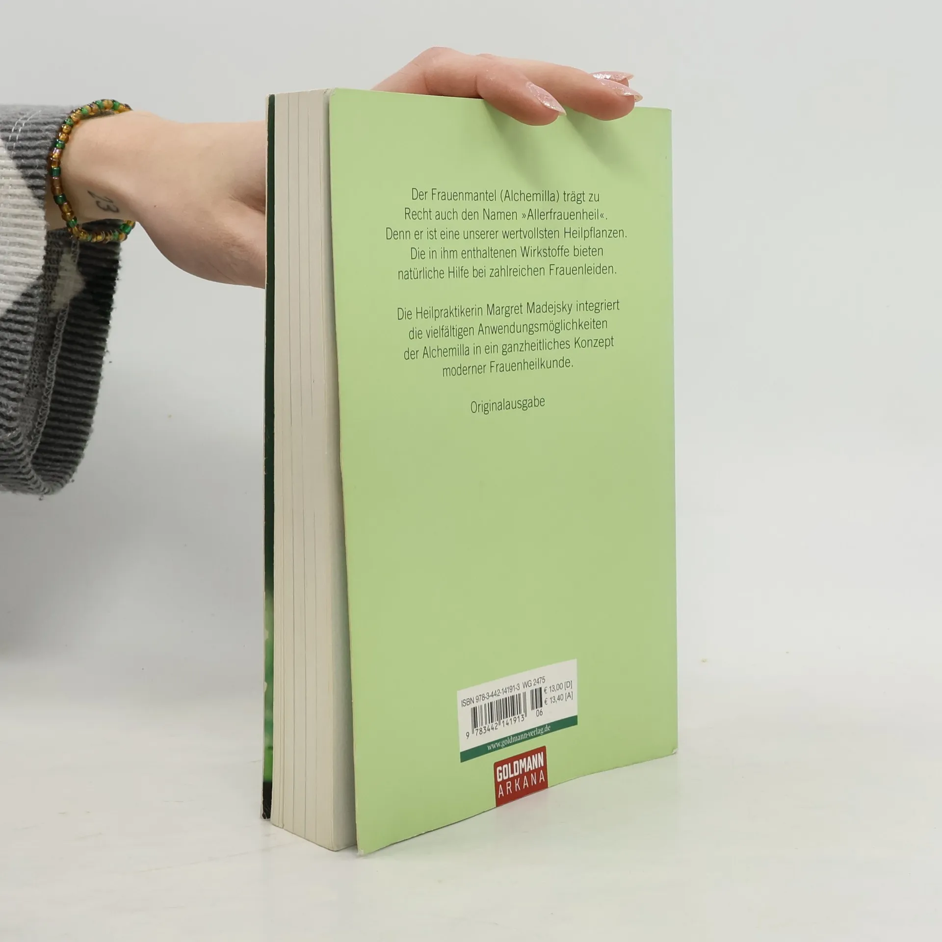 Über die durchgreifenden Heilwirkungen von Frauenmantel + Co. Der Frauenmantel (Alchemilla) trägt zu Recht auch den Namen „Allerfrauenheil“. Denn er ist eine unserer wertvollsten Heilpflanzen. Die in ihm enthaltenen Wirkstoffe bieten natürliche Hilfe bei fast allen Frauenleiden. Die Heilpraktikerin Margret Madejsky integriert die vielfältigen Anwendungsmöglichkeiten in ein ganzheitliches Konzept moderner Frauenheilkunde. Dabei berücksichtigt sie auch neue Indikationsgebiete wie die Behandlung von Antibabypillenschäden und Schwermetallvergiftungen im Rahmen einer Fruchtbarkeitsbehandlung. Ausstattung: durchgehend s/w und farbig bebildert