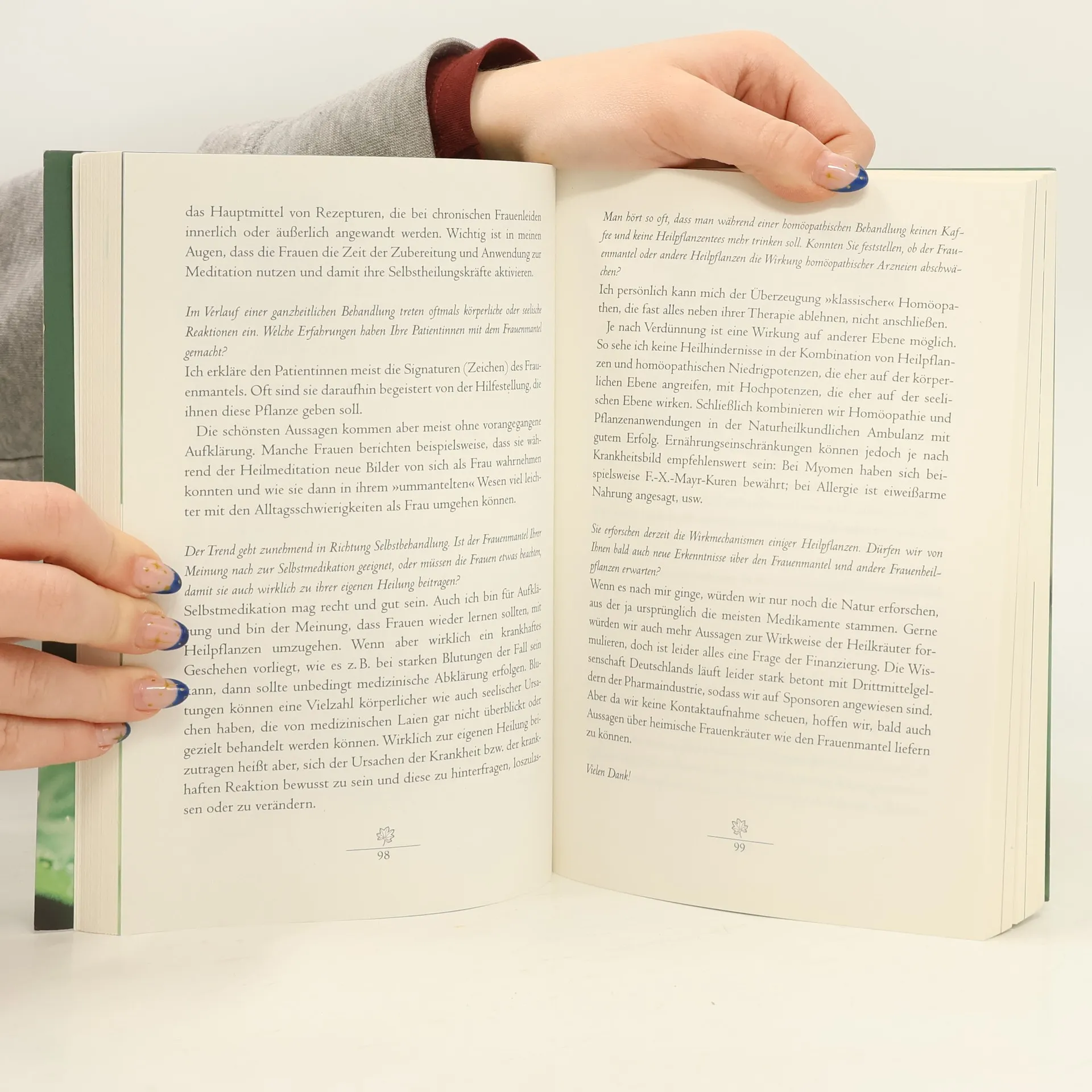 Über die durchgreifenden Heilwirkungen von Frauenmantel + Co. Der Frauenmantel (Alchemilla) trägt zu Recht auch den Namen „Allerfrauenheil“. Denn er ist eine unserer wertvollsten Heilpflanzen. Die in ihm enthaltenen Wirkstoffe bieten natürliche Hilfe bei fast allen Frauenleiden. Die Heilpraktikerin Margret Madejsky integriert die vielfältigen Anwendungsmöglichkeiten in ein ganzheitliches Konzept moderner Frauenheilkunde. Dabei berücksichtigt sie auch neue Indikationsgebiete wie die Behandlung von Antibabypillenschäden und Schwermetallvergiftungen im Rahmen einer Fruchtbarkeitsbehandlung. Ausstattung: durchgehend s/w und farbig bebildert