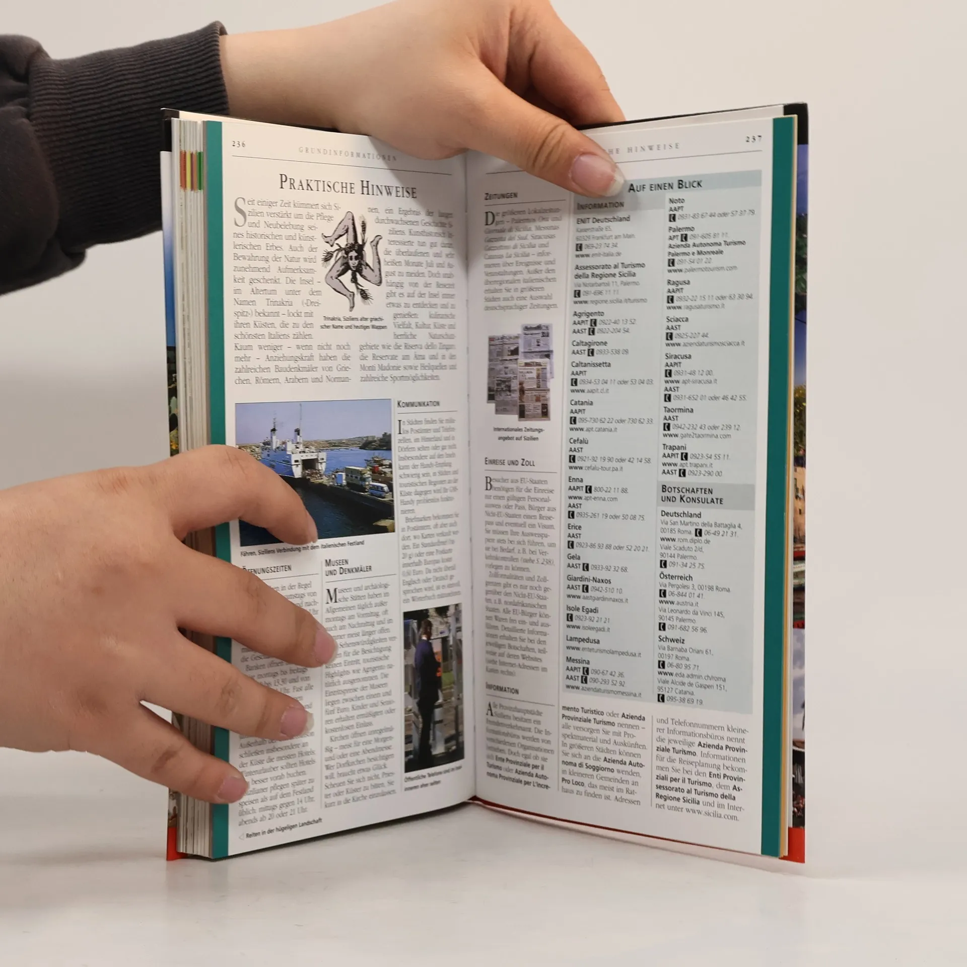 Der Vis-à-Vis-Reiseführer Sizilien bietet Ihnen alle Informationen, die Sie für einen gelungenen Urlaub benötigen. Hier finden Sie zudem aktuelle Angaben zu Hotels, Restaurants, Shopping und Unterhaltung und praktische Tipps zu Verkehrsmitteln, Sicherheit, Öffnungszeiten etc. Attraktionen, die man nicht versäumen darf, erkennt man auf den ersten Blick. Die hervorragenden Abbildungen - exakte Schnittzeichnungen, dreidimensionale Grundrisse, Übersichtskarten und Citypläne - erleichtern Ihnen die Orientierung vor Ort. Aktuelle Fotografien stimmen Sie bereits vorab auf den Urlaub ein und attraktive Routenvorschläge machen einen stressfreien Urlaub möglich.