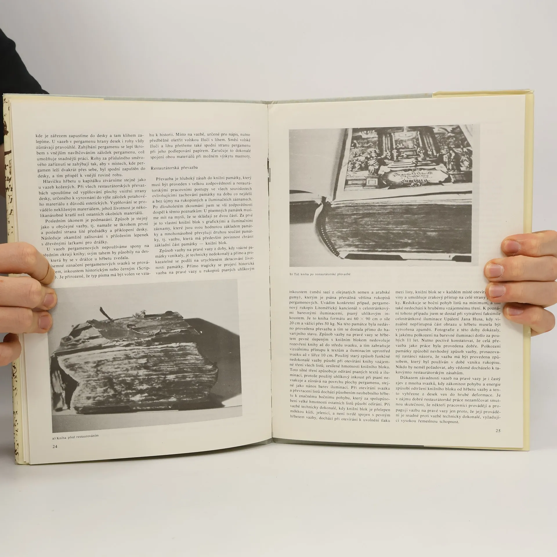 Publikace se týká restaurování a konzervace písemných památek, knižních rukopisů, iluminací na pergamenu i na papíře, vzácných tisků, historických listin, pečetí a historických vazeb. 1.vydání - náklad pouhých 5000 ks.