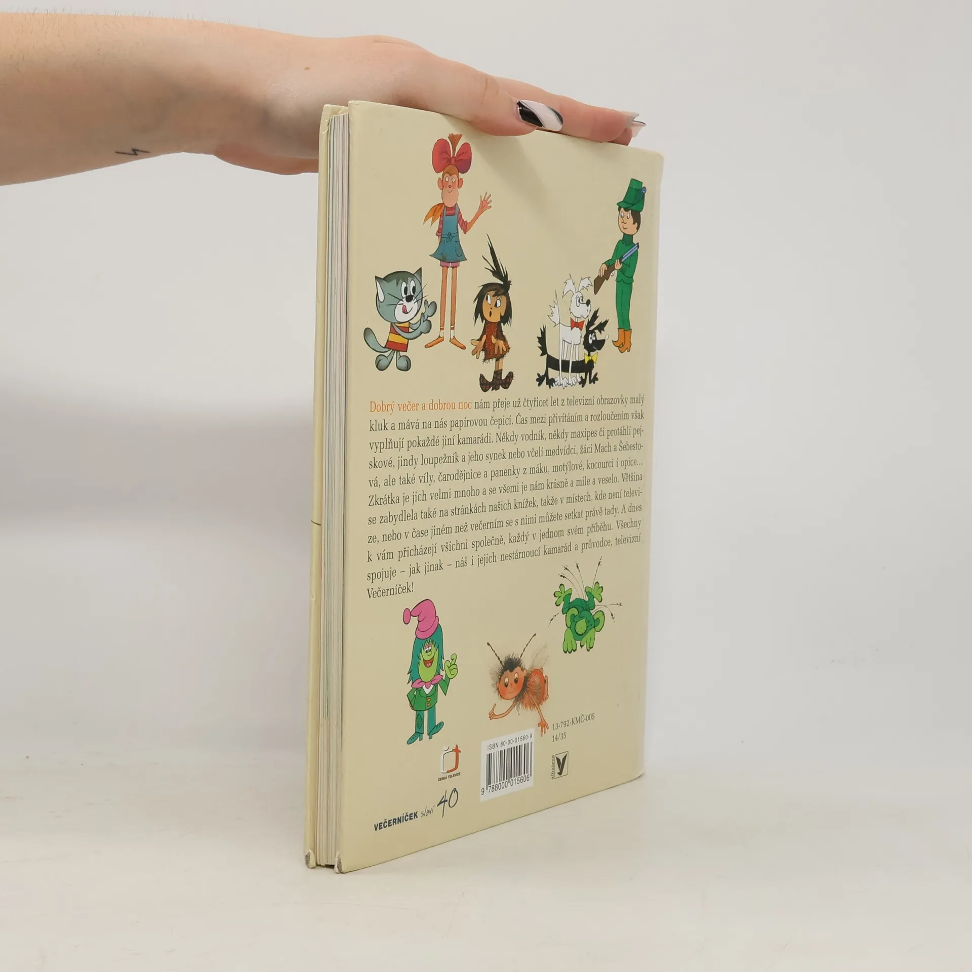 Nejoblíbenější dětský pořad na české obrazovce Večerníček slaví letos 40 let od svého vzniku, a protože jeho příběhy mají u dětí velký úspěch i v knižní podobě, připravili jsme výbor toho nejlepšího, co se za dlouhých 40 let dětem nejvíc líbilo. V barevné a bohatě ilustrované knížce najdete dvacet příběhů těch nejoblíbenějších postaviček, jako jsou Mach a Šebestová, Rákosníček, Křemílek a Vochomůrka, Malá čarodějnice, Bob a Bobek, Runcaje s Mankou i Cipískem, Štaflík a špagetka, Maková panenka a motýl Emanuel nebo Víla Amálka či neposedná koťata Macourek, Camfourek a Pacička.