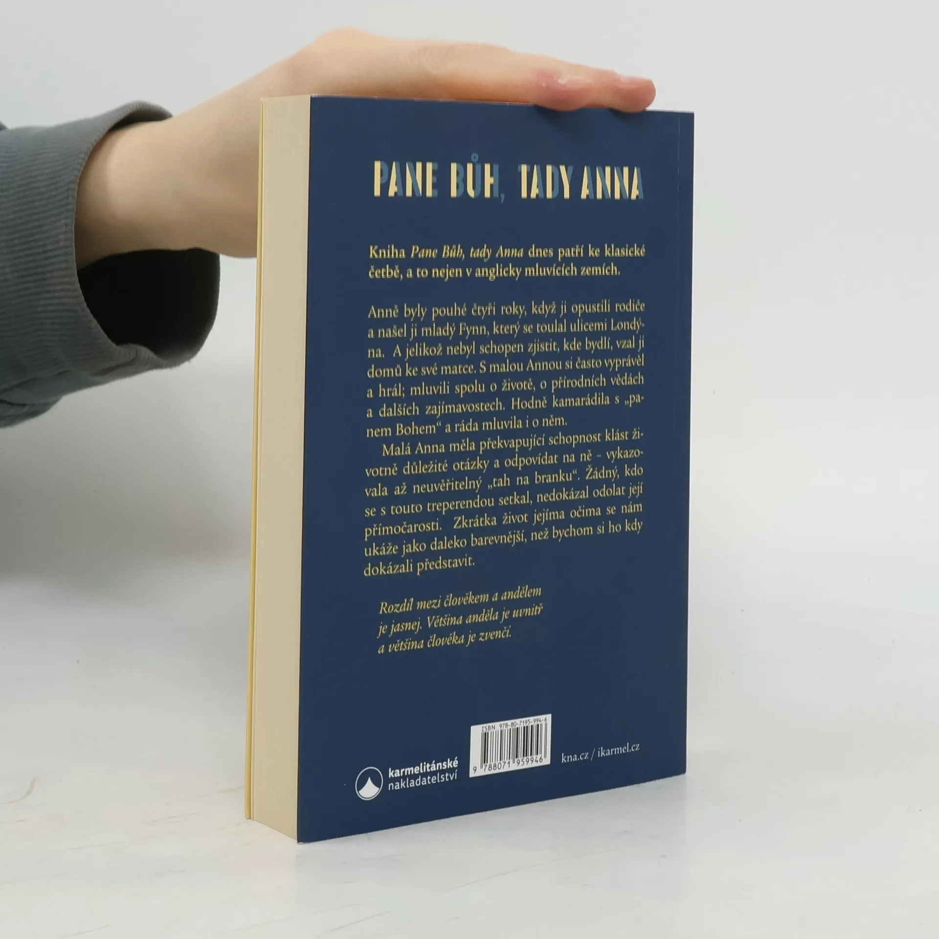 Anně byly pouhé čtyři roky, když ji opustili rodiče a našel ji mladý Fynn, který se toulal ulicemi Lodýna. A jelikož nebyl schopen zjistit, kde bydlí, vzal ji domů ke své matce. S malou Annou si často vyprávěl a hrál; mluvili spolu o životě, o přírodních vědách a dalších zajímavostech. Hodně kamarádila s „panem Bohem“ a ráda mluvila i o něm. Malá Anna měla překvapující schopnost klást životně důležité otázky a odpovídat na ně - vykazovala až neuvěřitelný "tah na branku". Žádný, kdo se s touto treperendou setkal, nedokázal odolat její přímočarosti. Zkrátka život jejíma očima se nám ukáže jako daleko barevnější, než bychom si ho kdy dokázali představit. Kniha Pane Bůh, tady Anna dnes patří ke klasické četbě, a to nejen v anglicky mluvících zemích.