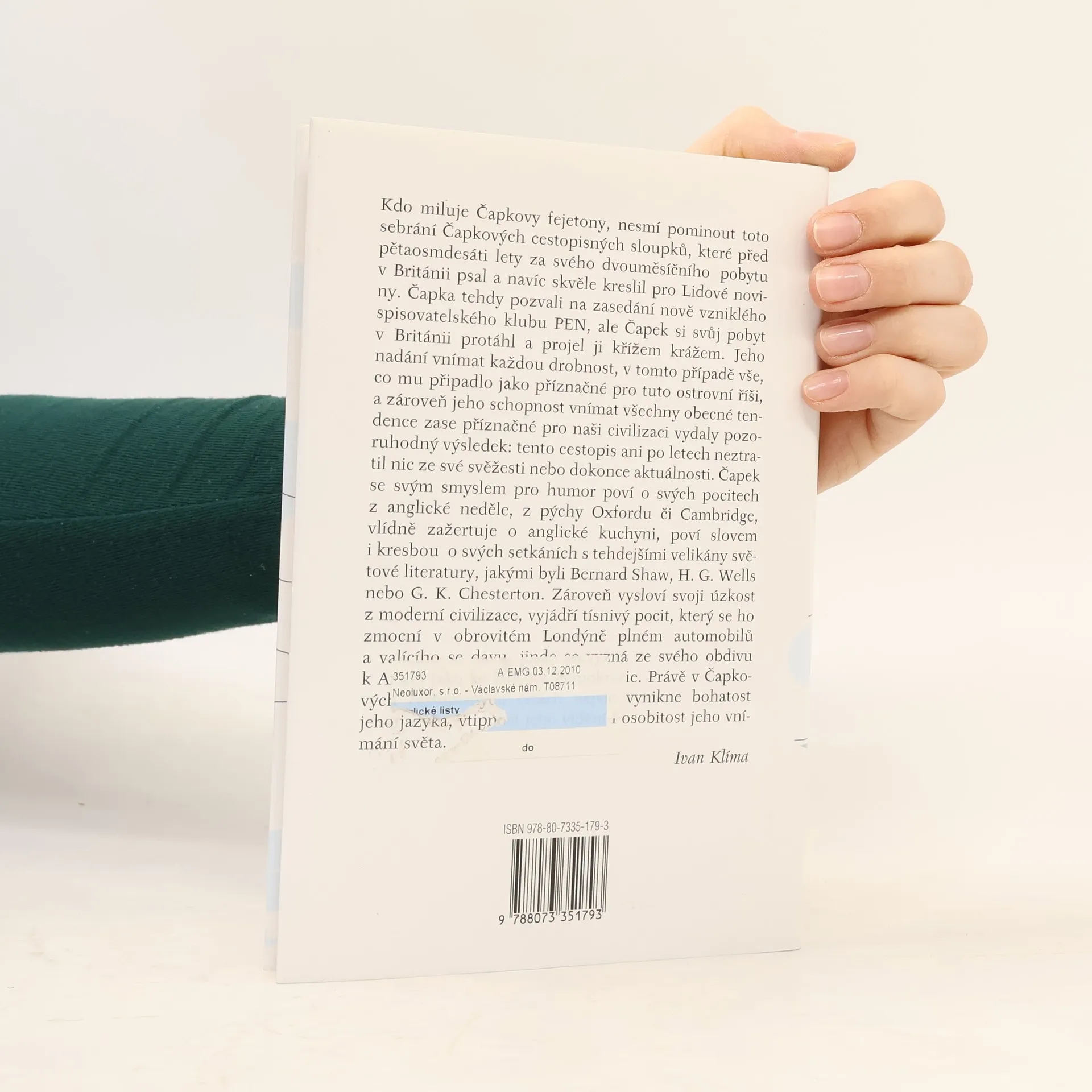 Kdo miluje Čapkovy fejetony, nesmí pominout toto sebrání Čapkových cestopisných sloupků, které před pětaosmdesáti lety za svého dvouměsíčního pobytu v Británii psal a navíc skvěle kreslil pro Lidové noviny. Čapka tehdy pozvali na zasedání nově vzniklého spisovatelského klubu PEN, ale Čapek si svůj pobyt v Británii protáhl a projel ji křížem krážem. Jeho nadání vnímat každou drobnost, v tomto případě vše, co mu připadlo jako příznačné pro tuto ostrovní říši, a zároveň jeho schopnost vnímat všechny obecné tendence zase příznačné pro naši civilizaci vydaly pozoruhodný výsledek: tento cestopis ani po letech neztratil nic ze své svěžesti nebo dokonce aktuálnosti.