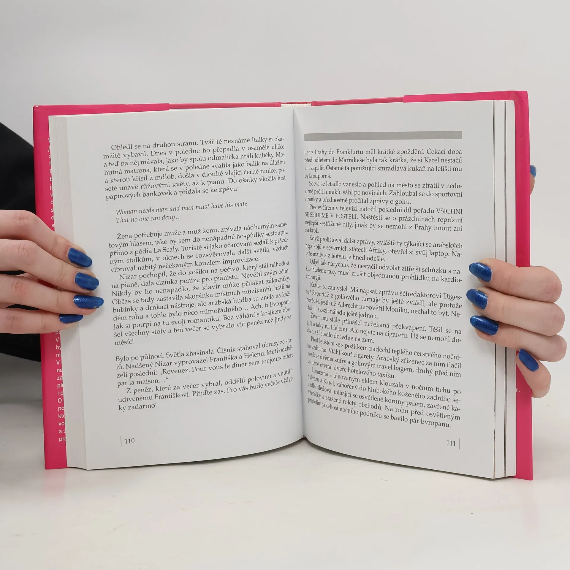 Ve volném pokračování románu Líbáš jako Bůh sledujeme další osudy zamilovaného páru - středoškolské učitelky Heleny a lékaře Františka. František se rozhodne odstěhovat se od své bývalé ženy Bohuny, ale ani soužití s Helenou se nevyhne komplikacím. A zrodí se nečekaný plán: Ze dne na den se s Helenou tajně vydávají na dovolenou do vzdáleného Maroka. Román přináší osvědčený autorský koktejl plný humoru, lehké ironie a tentokrát i příjemného napětí.