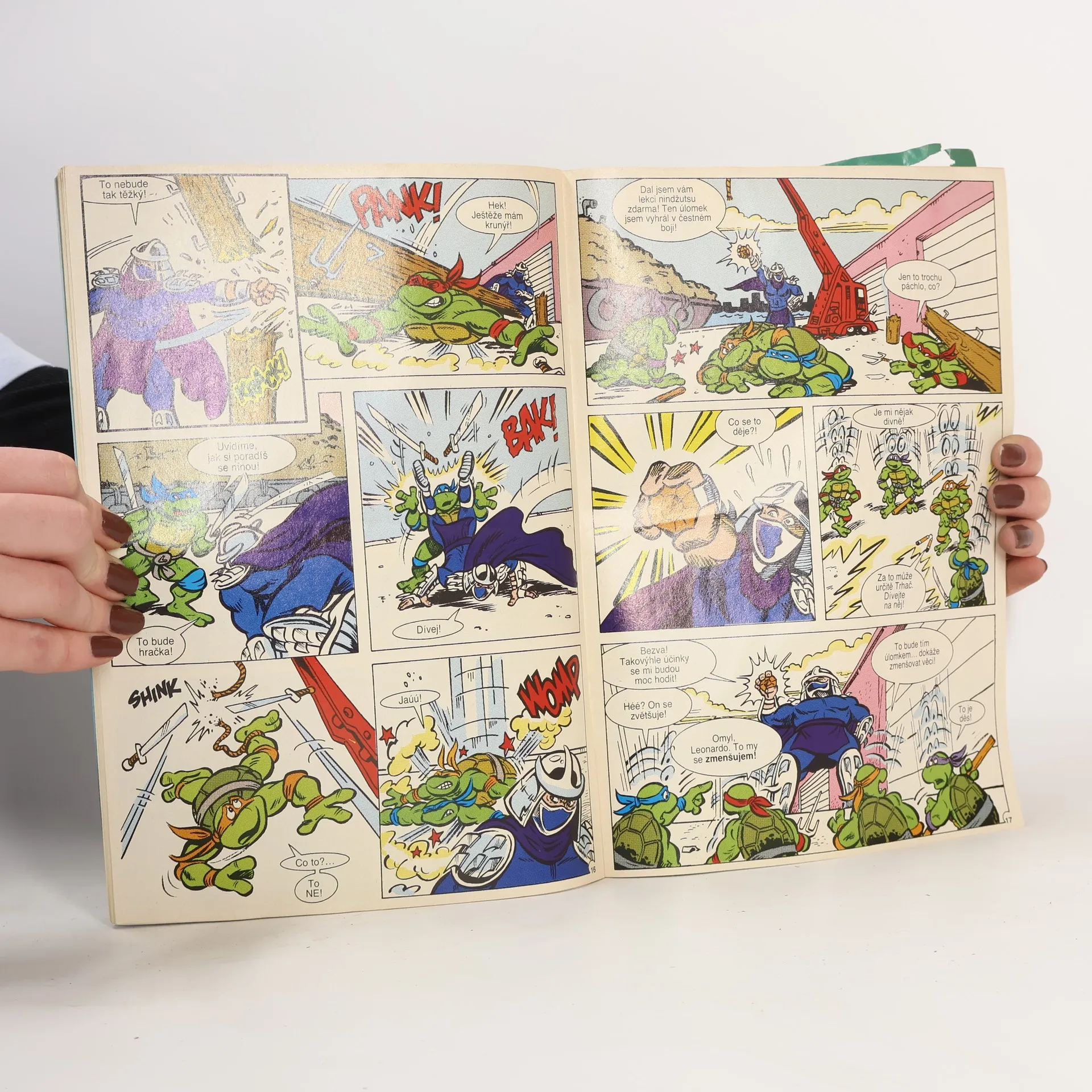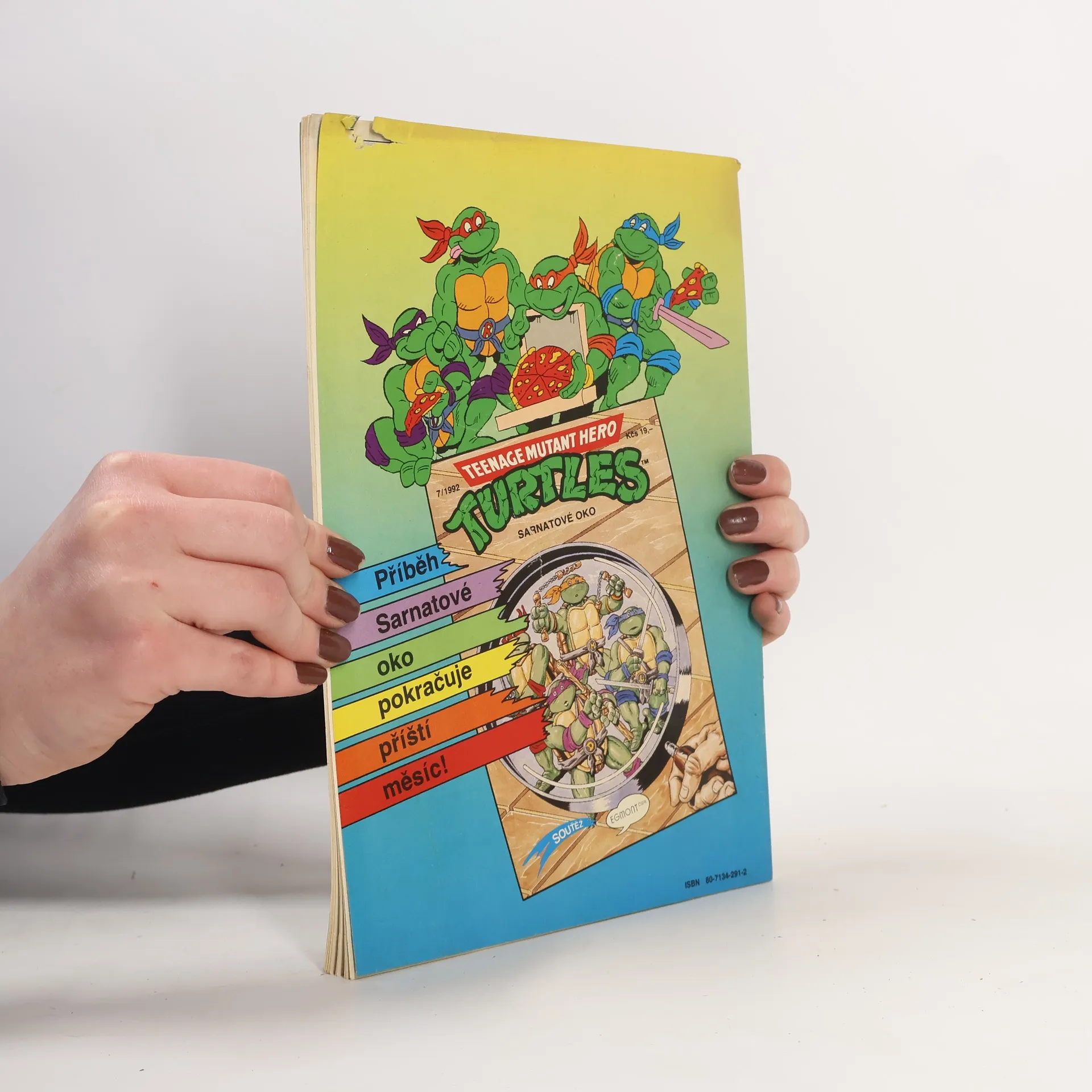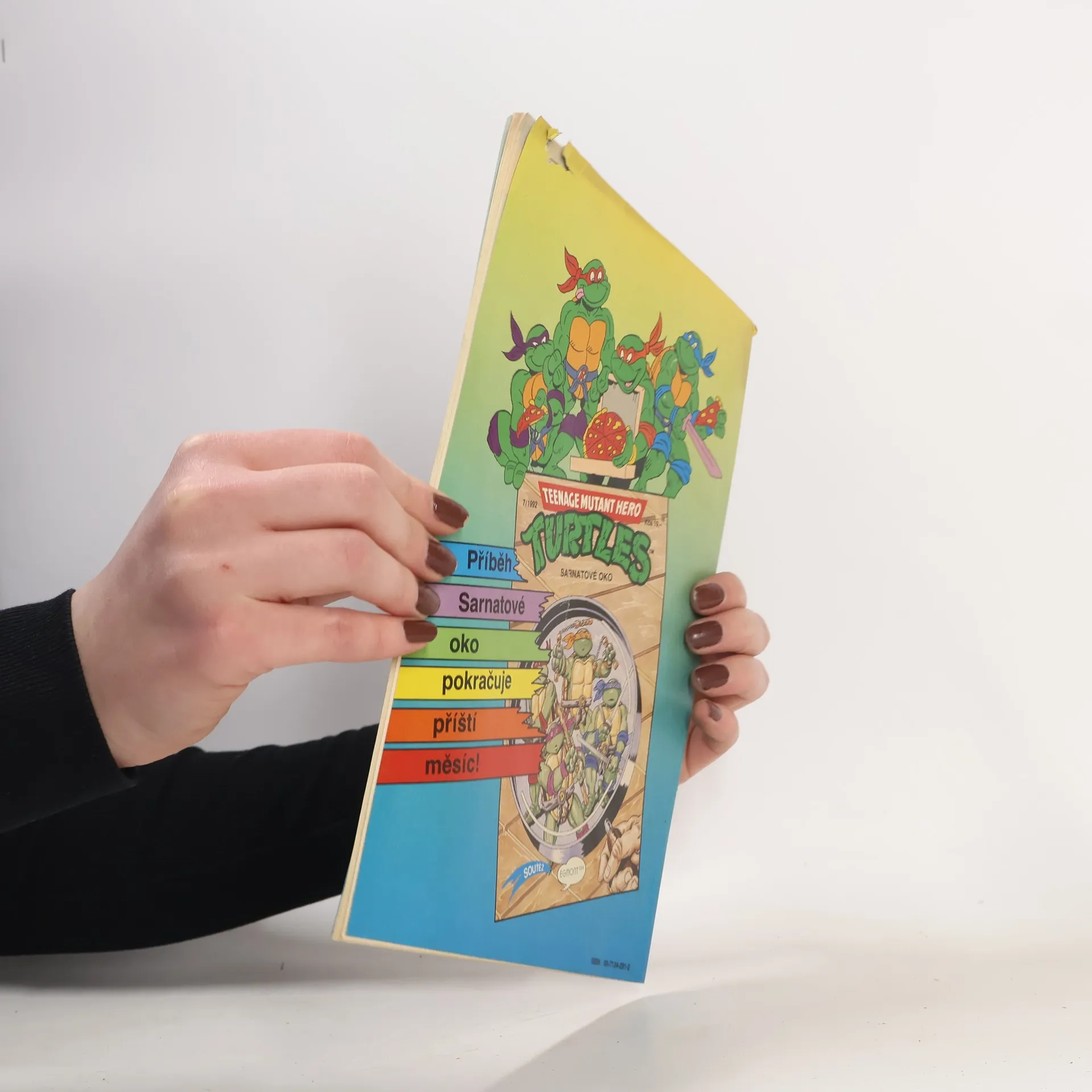 Příběh: Sarnatové oko I Sešit ze serie příběhu neunávných želvých bojovníků a milovníků pizzy - Donatellem, Michelangelem a Raffaelem. A nejen s nimi se setkáte, ale také s April O'Neilovou, atraktivní reportérkou, s Třískou, učitelem starého japonského bojového umění nindžutsu, a samozřejmě s Trhačem, jejich úhlavním nepřítelem, který chce ovládnout celý svět...