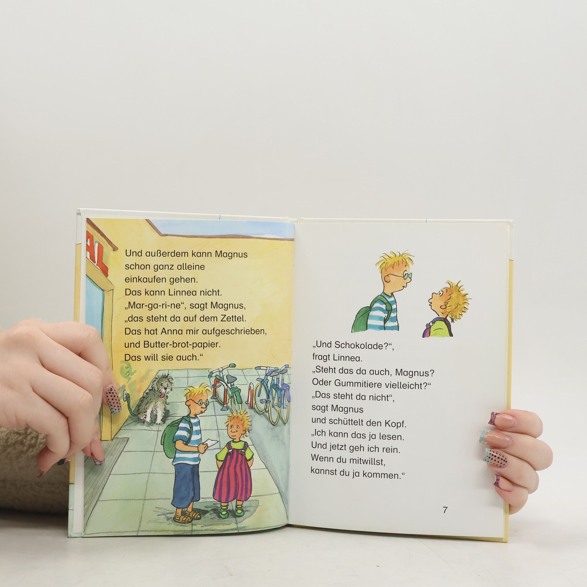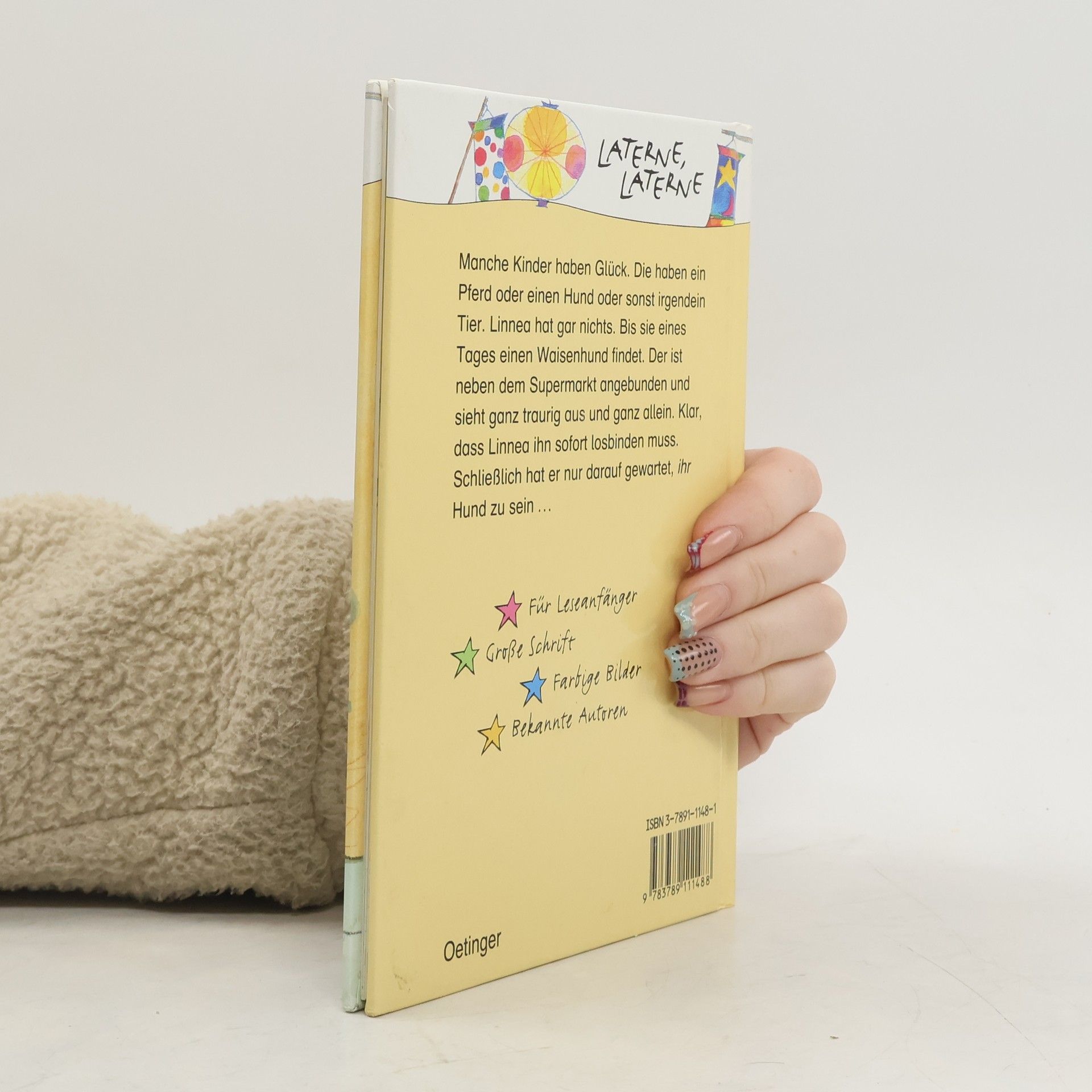 Neues von Linnea in der farbigen Oetinger Kinderbuch-Reihe LATERNE, LATERNE für Leseanfänger. Mit Extra-Blatt für Lese-Detektive! Manche Kinder haben Glück. Die haben ein Pferd oder einen Hund oder sonst irgendein Tier. Linnea hat gar nichts. Nur zwei größere Geschwister, Anna und Magnus. Aber so gut wie ein echtes Tier sind die natürlich nicht. Eines Tages findet Linnea einen Waisenhund. Der ist neben dem Supermarkt angebunden und sieht ganz traurig aus und ganz allein. Klar, dass Linnea ihn sofort losbinden muss. Schließlich hat er nur darauf gewartet, ihr Hund zu sein. Aber Anna und Magnus müssen wieder alles verderben. Nur, weil der Hund eine Hundemarke hat, soll er jemandem gehören? Das kann Linnea nicht glauben. Trotzdem geht sie mit dem Hund zum Supermarkt zurück. Und tatsächlich: Da steht eine alte Frau und guckt ganz aufgeregt. Und als der Hund die alte Frau sieht, ist er plötzlich gar kein Waisenhund mehr.