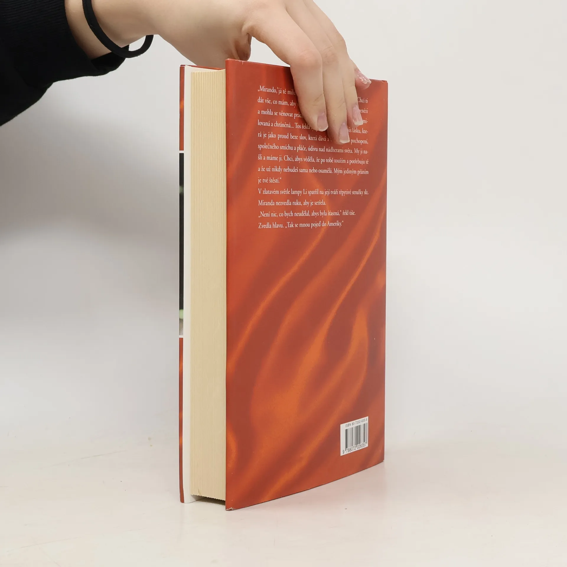 Příběh Američanky, která v exotickém prostředí Číny nachází osudovou lásku. Americká módní návrhářka Miranda přijíždí na osmidenní služební pobyt do Pekingu. Na letišti se náhodně seznamuje se stavebním inženýrem Liem. Miranda si prostřednictvím nových zážitků uvědomuje sama sebe a v okouzlujícím Číňanovi nachází svou osudovou lásku, ve kterou již nedoufala. Na pozadí exotického prostředí, popisu nové ekonomické a politické situace v Číně a střetávání dvou rozdílných kultur se odehrává příběh milostného vzplanutí dvou hrdinů středního věku.