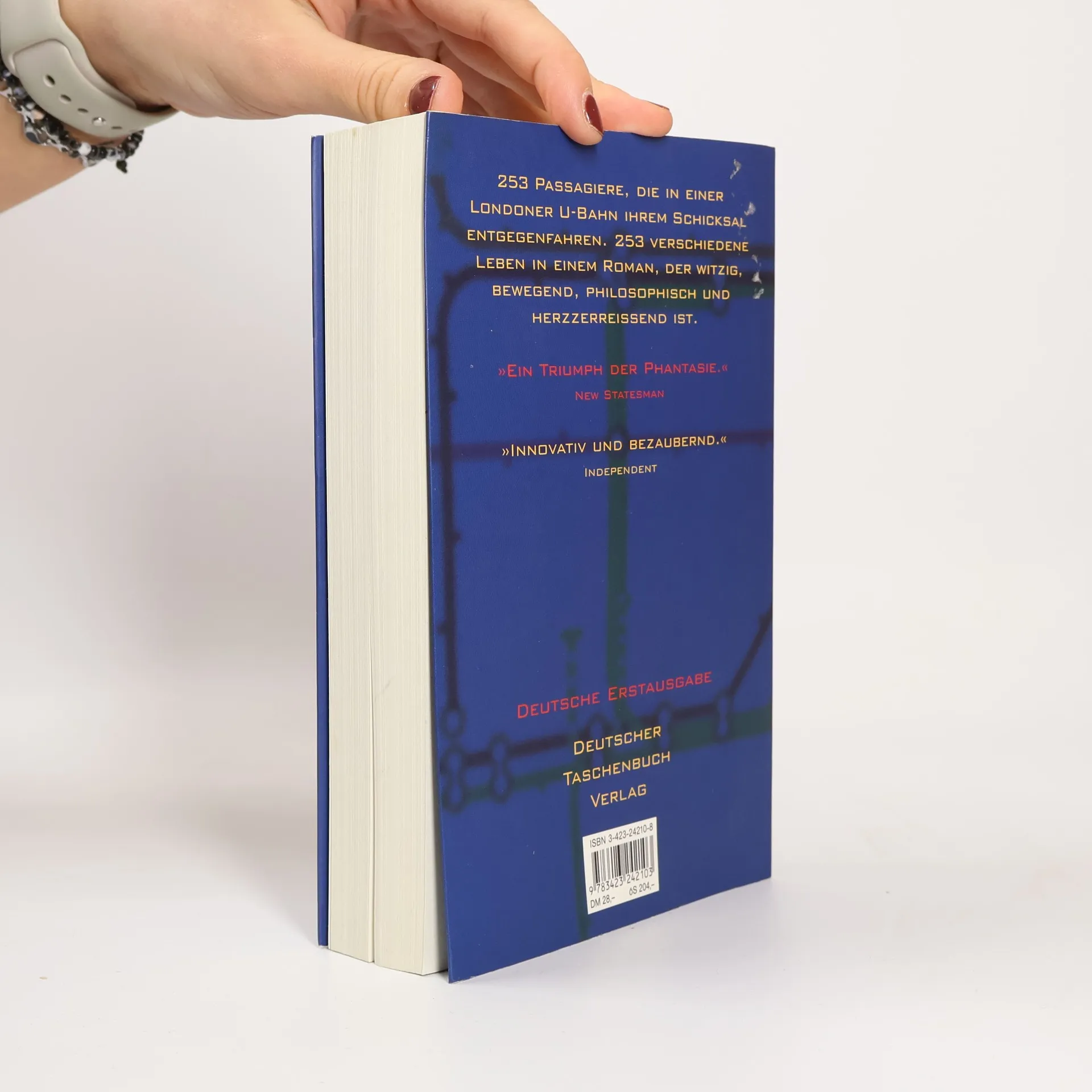 Am 11. Januar 1995, um 8 Uhr 42, geschah in der Londoner U-Bahn kein Unfall, doch es hätte sein können. In den letzten sieben Minuten vor einer hypothetischen Katastrophe stellt sich die Frage, was die Passagiere gedacht haben könnten. Geoff Ryman beleuchtet in seinem Romanexperiment 253 verschiedene Menschen, ihre Erscheinungen, Lebensumstände und Gedanken, jeweils auf einer Seite mit genau 253 Wörtern pro Passagier. So entsteht ein facettenreiches Bild der U-Bahn-Insassen, das die Vielfalt der Großstadt widerspiegelt. Die Schicksale sind zart und grausam, lächerlich und großartig, wie der Mensch selbst. Während der eine Passagier einen Mord plant, will ein anderer seine Frau mit einem Geburtstagsgeschenk überraschen. Zwei sind verliebt, während eine Mutter und ihre Tochter, die nichts voneinander wissen, nebeneinandersitzen. Einheimische, Touristen, Flüchtlinge, Schwarze und Weiße, Künstler und Ganoven – sie alle sind in einem engen Raum vereint, ohne wirklich etwas voneinander zu wissen. Doch ihre Schicksale sind miteinander verwoben, was die Komplexität menschlicher Beziehungen und die Unvorhersehbarkeit des Lebens verdeutlicht.
