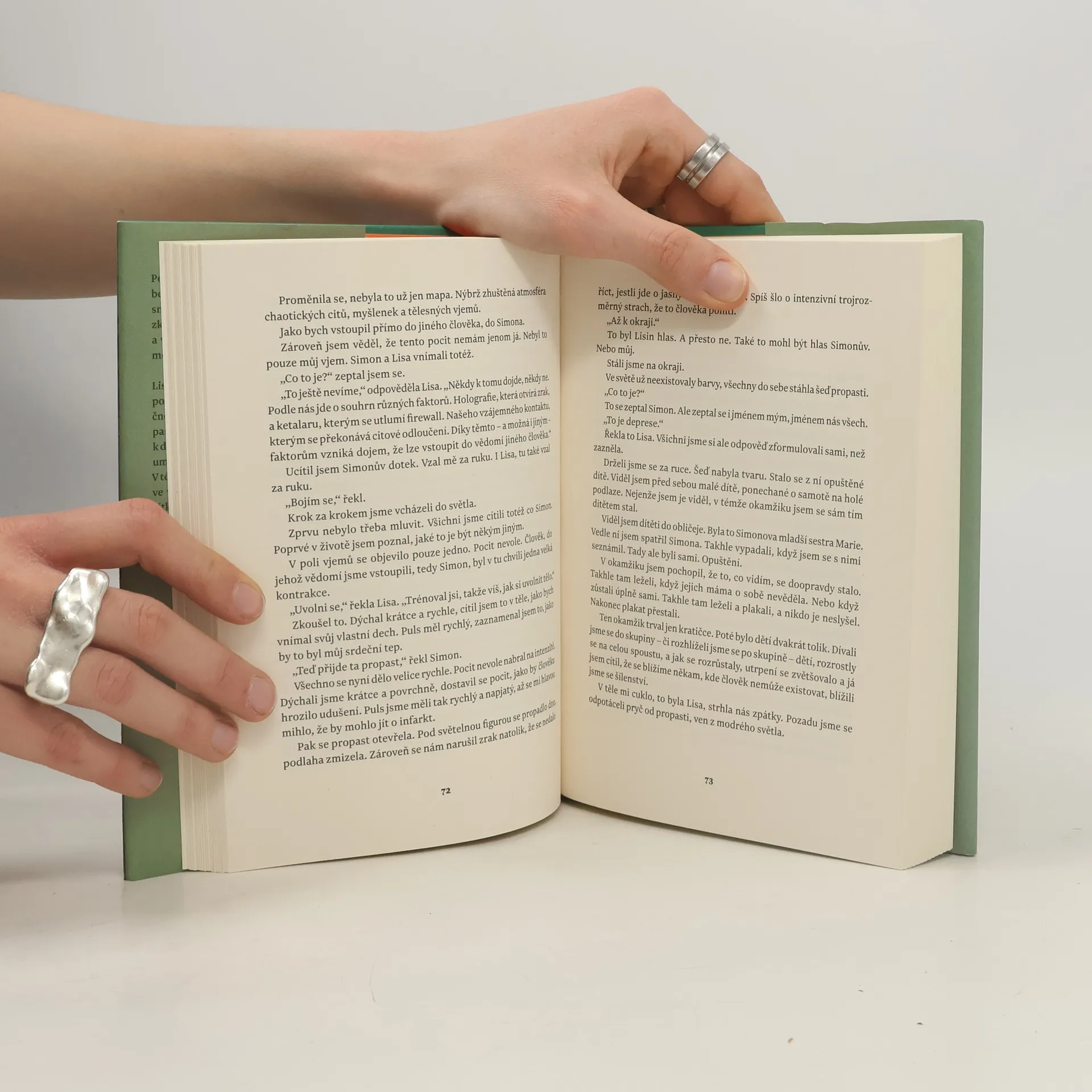 Poté, co se jeho přítel Simon pokusí o sebevraždu, navštíví Petr kliniku, která by snad mohla Simonovi pomoci. Na klinice zkoumají hlubinné kontakty mezi lidmi a vyvinuli epochální metodu skenování mozku. Petr zjistí, že ředitelkou kliniky je Lisa, jeho kamarádka z dětství. Ta však po dopravní nehodě ztratila paměť. Začnou se spolu scházet a díky tomu se jí paměť pomalu vrací. Společně se vracejí k dávným zážitkům, kdy už jako malé děti uměli nacházet cesty do lidského vědomí. V této práci nyní Lisa, společně s Petrem, ve větším a mnohem riskantnějším měřítku pokračuje. Co se stane, když před sebou vidíme vědomí člověka v podobě budovy? A co se stane, když do této budovy vstoupíme? Vydání knihy podpořila Dánská umělecká rada.
