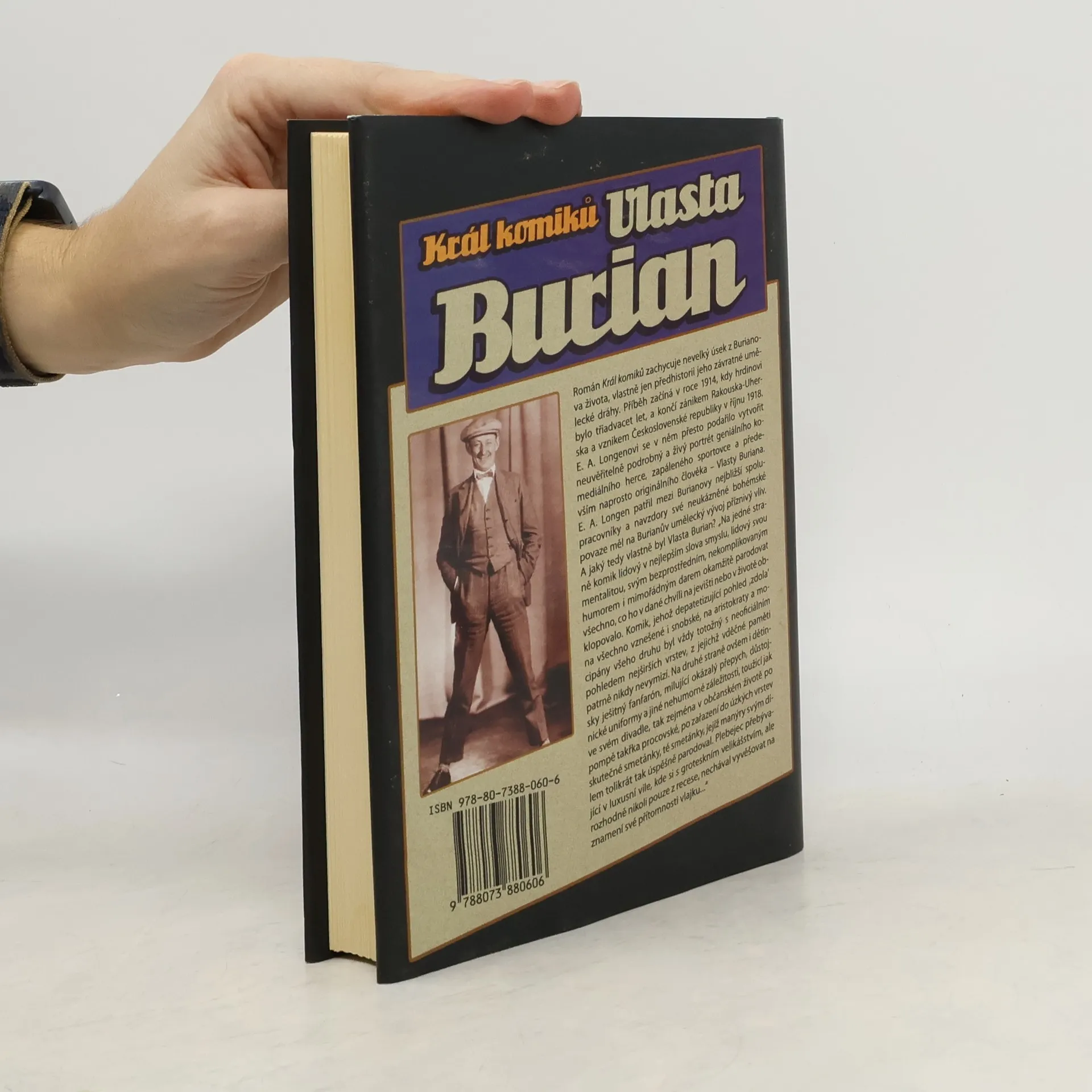 Životopisný román o mládí a uměleckých začátcích nepřekonatelného komika Vlasty Buriana zachycuje období od roku 1914 a končí vznikem Československé republiky v roce 1918. Spisovatel E. A. Longen patřil mezi Burianovy nejbližší spolupracovníky a díky tomu vytvořil ve své knize podrobný a plastický portrét geniálního komediálního herce, zapáleného sportovce a originálního člověka s mnoha rozporuplnými vlastnostmi.