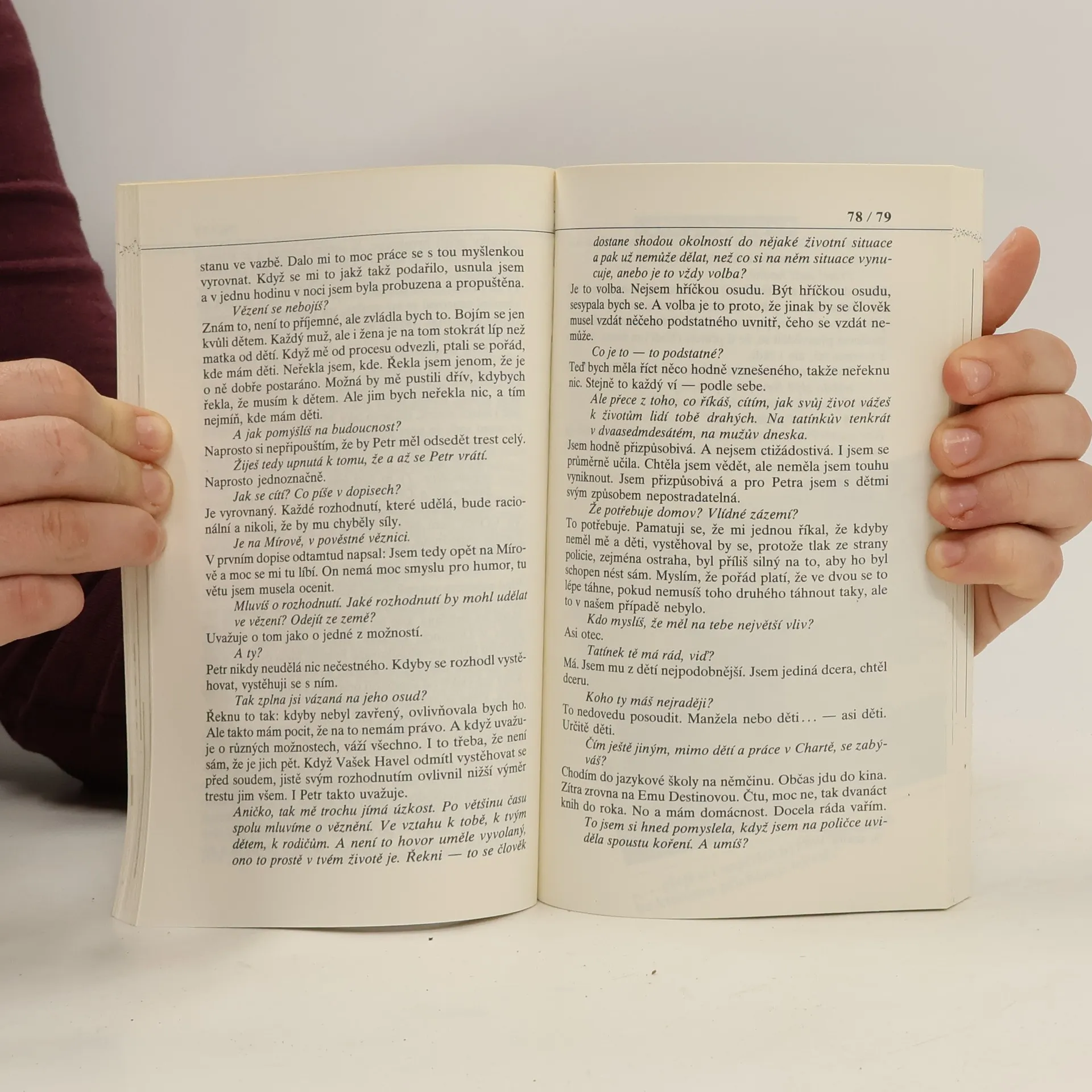 Jde o dvanáct rozhovorů a vlastně jeden navíc. Protagonistkami jsou ženy, které spojuje úděl jakýchsi vyvrženců společnosti - manželek mužů, kteří se pro své politické postoje dostali až do vězení.