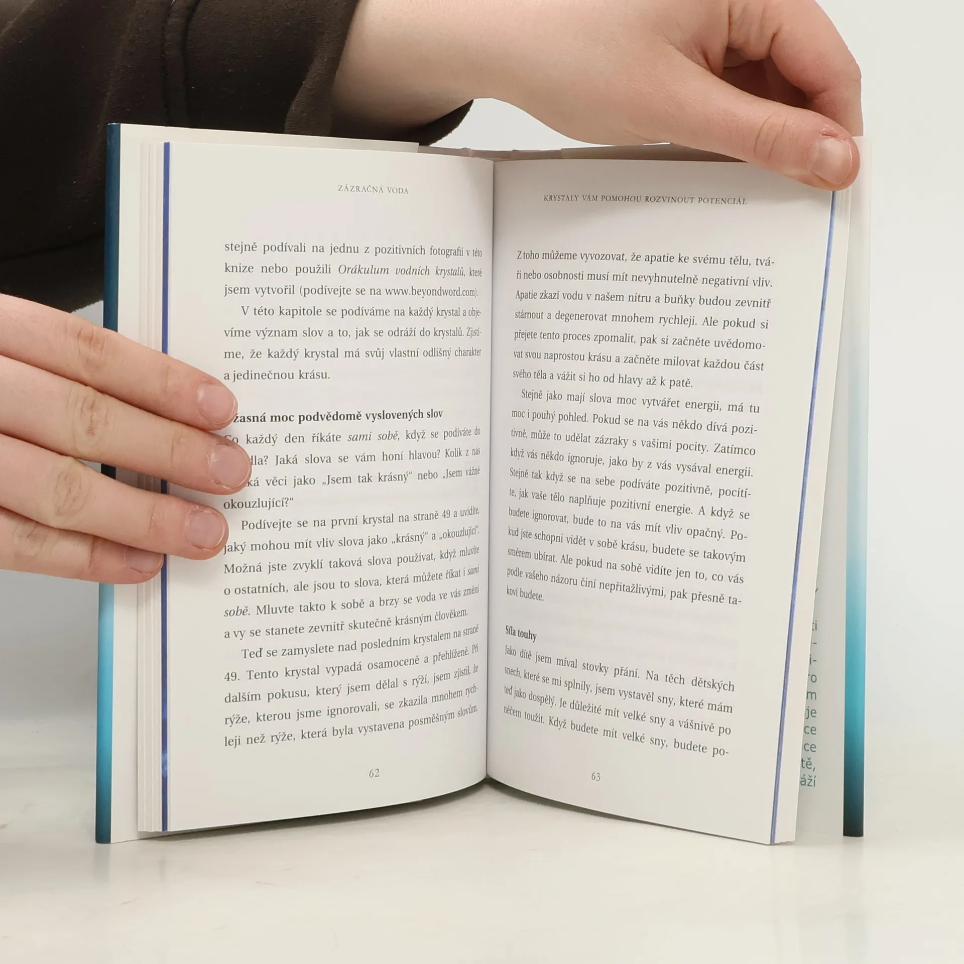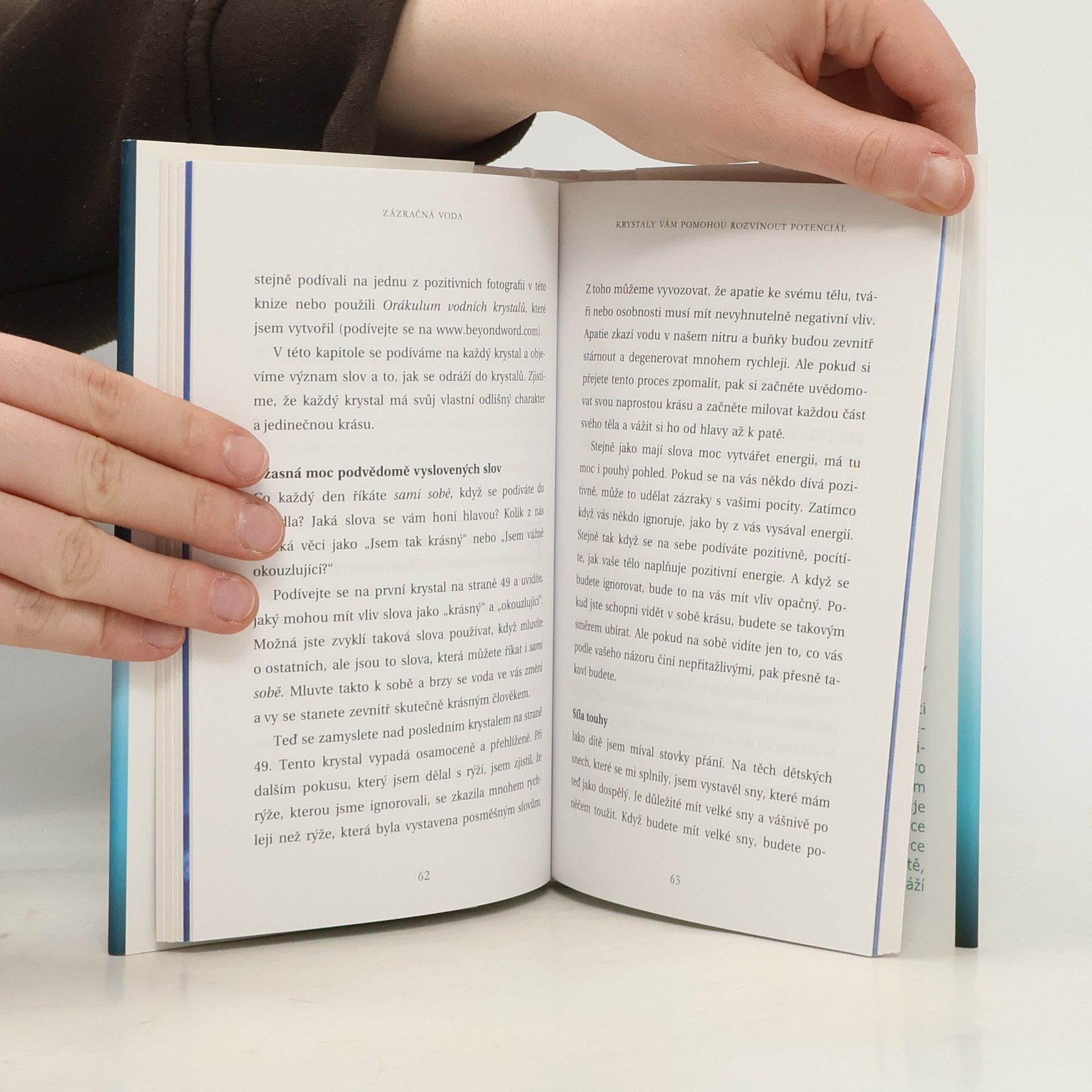 V knize Zázračná voda dr. Emoto ukazuje, jak voda přenášením vibrací přirozených slov může pomoci se změnit a žít pozitivnější a šťastnější život. Dr. Emoto objevuje význam slov a jazyka, jejich původ a vliv na vodu. Pracuje s klíčovým pojmem rezonance, prostředku, jímž se přenáší životní energie. Z tohoto poznání čerpá poučení, která si můžeme vzít do života a sklízet výhody pozitivní rezonance, jako je harmonizace vztahů, lepší zdraví a zlepšení komunikace. Kniha obsahuje nové a neobyčejné fotografie vodních krystalů, které nám všem poskytují přesvědčivé důvody, proč bychom si měli vybírat pozitivní slova a usilovat o dokonalé souznění, abychom dosáhli zdravějšího a šťastnějšího života v míru.