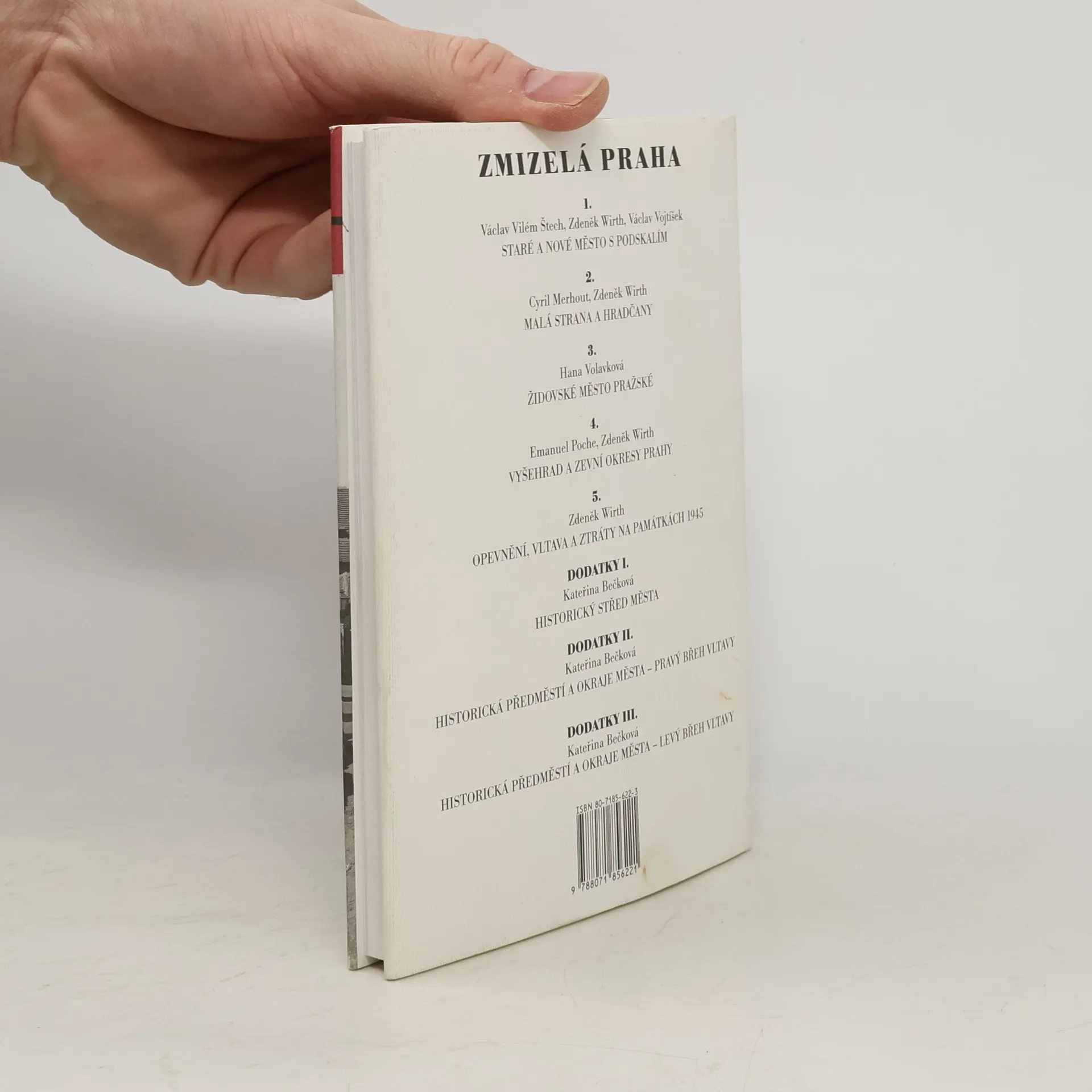 Historická předměstí a okraje města - pravý břeh Vltavy. Novodobá úprava a kvapná přestavba starých částí Prahy, zahájená v polovině 19. století a motivovaná hospodářskými a technickými, ale i uměleckými důvody, zničila největší část krásného stavebního dědictví města z 12. až 18. století. V letech 1916–1948 vyšel soubor pěti knih, jež pomocí dobových fotografií mapovaly neblahý zásah nové doby do staré Prahy. Tento cyklus doplňují tři nové svazky, které se soustřeďují zejména na zásahy po roce 1945. První z nich je věnován změnám v historickém jádru města, druhý a třetí historickým předměstím a okrajům města – pravému a levému břehu Vltavy.