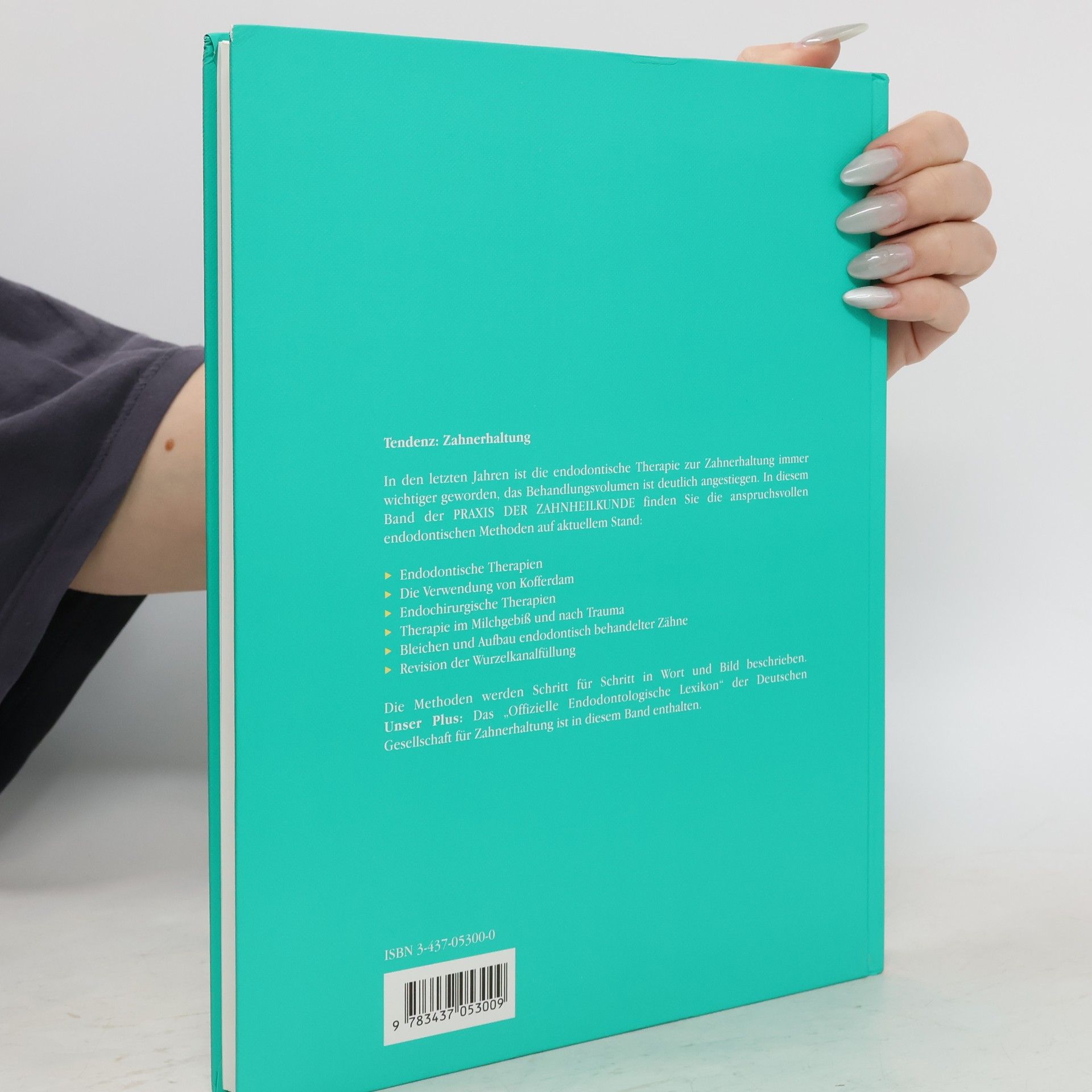 Aktueller Überblick über das gesamte Spektrum der Endodontie - von den Grundlagen bis zur Therapie. Instrumente, Materialien und Techniken werden mit aussagekräftigen Abbildungen vorgestellt. Inhalt: Struktur der gesunden Pulpa und ihre Erkrankungsformen Diagnose und Notfallendodontie Vitalerhaltende Therapie Wurzelkanalaufbereitung Wurzelkanalfüllung Die Verwendung von Kofferdam Endochirurgische Therapien Therapie im Milchgebiss und nach Trauma Bleichen endodontisch behandelter Zähne Aufbau endodontisch behandelter Zähne Revision der Wurzelkanalfüllung Unser Plus: Mit offiziellem Endodontologischen Lexikon der Deutschen Gesellschaft für Zahnerhaltung. Ein Beitrag zur Qualitätssicherung in der Endotonie