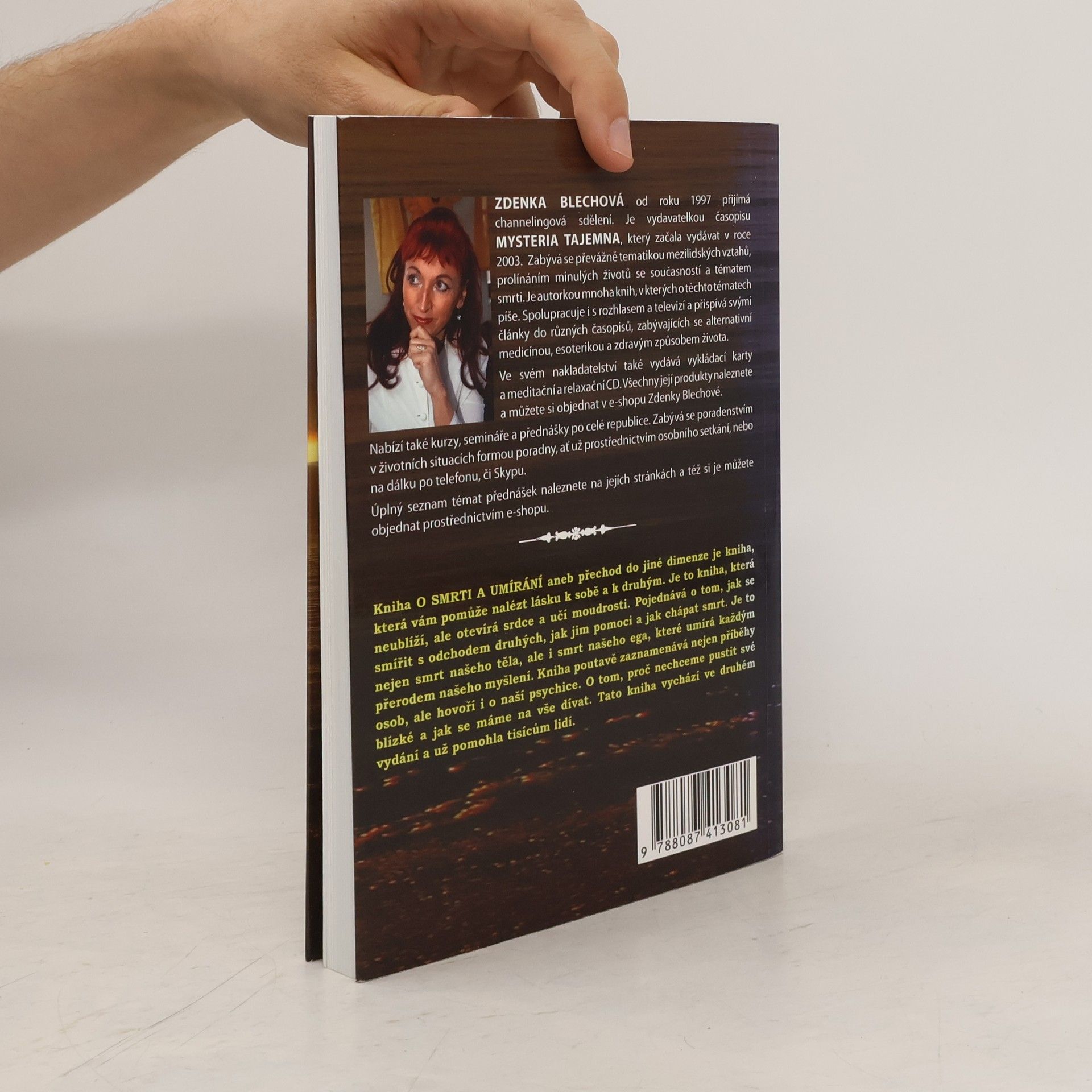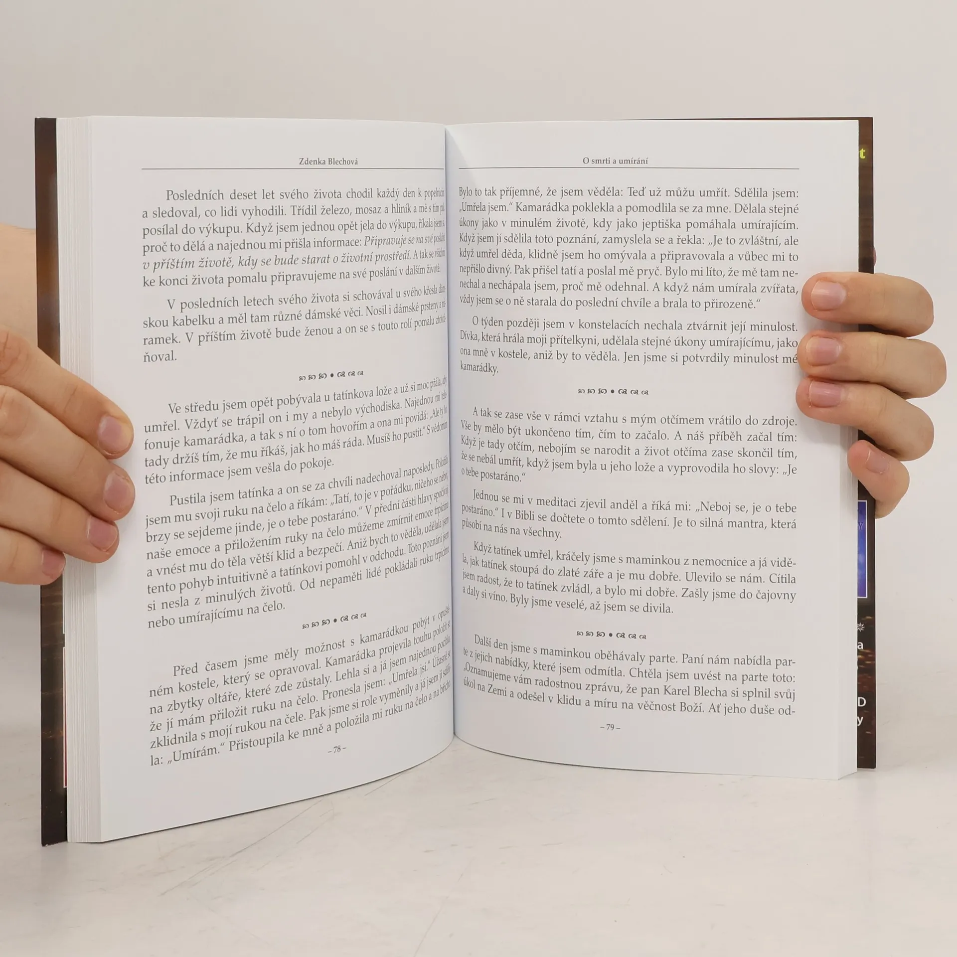 Kniha O SMRTI A UMÍRÁNÍ aneb přechod do jiné dimenze je kniha, která vám pomůže nalézt lásku k sobě a k druhým. Autorkou je známá spisovatelka Zdenka Blechová. Je to kniha, která neublíží, ale otevírá srdce a učí moudrosti. Pojednává o tom jak se smířit s odchodem druhých, jak jim pomoci a jak chápat smrt. Je to nejen smrt našeho těla, ale i smrt našeho ega, které umírá každým přerodem našeho myšlení. Kniha poutavě zaznamenává nejen příběhy osob, ale hovoří i o naší psychice. O tom, proč nechceme pustit své blízké a jak se máme na vše dívat. Tato kniha vychází jako druhé vydání a už pomohla tisícům lidí.