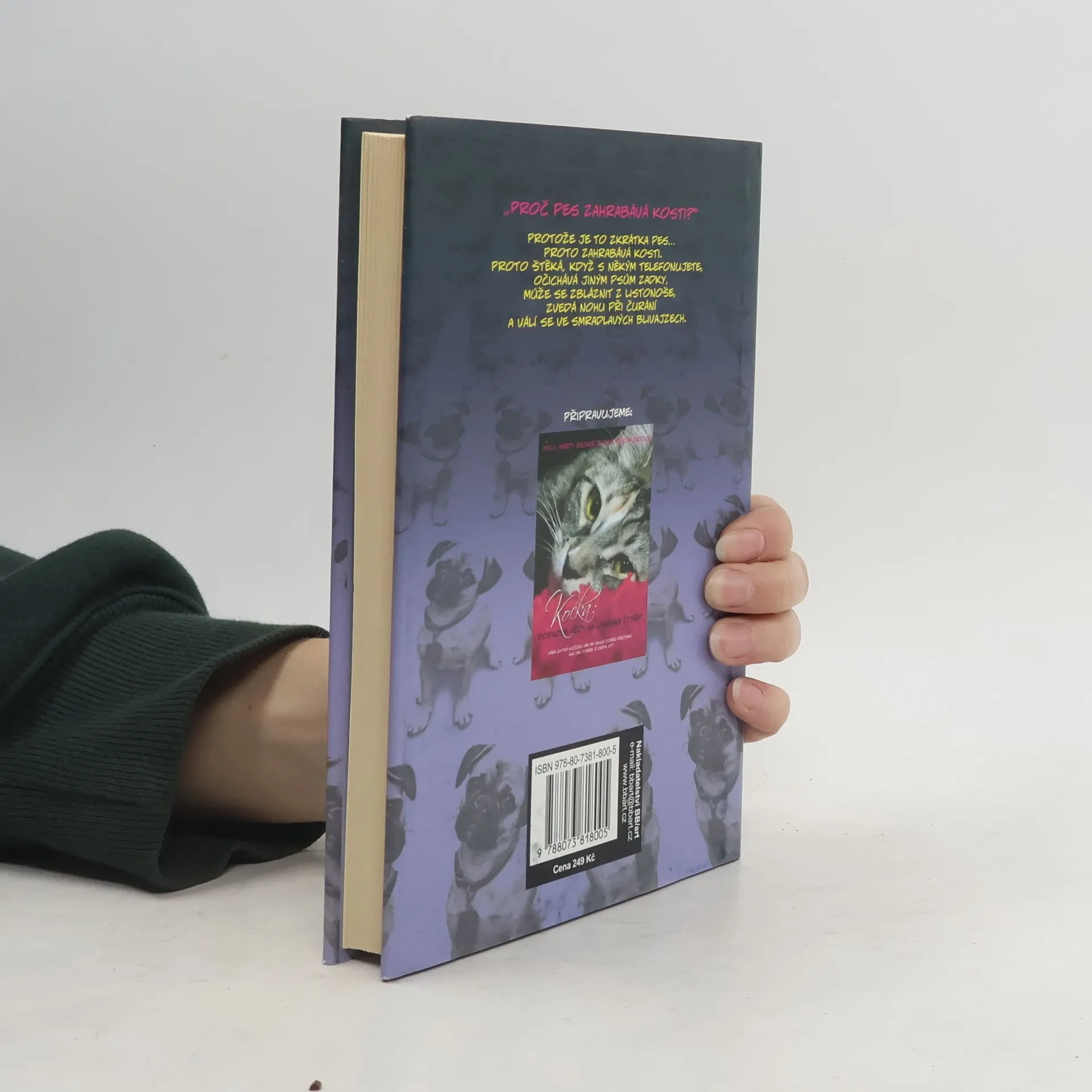 Proč pes zahrabává kosti?“ Protože je to zkrátka pes… Proto zahrabává kosti. Proto štěká, když s někým telefonujete, očichává jiným psům zadky, může se zbláznit z listonoše, zvedá nohu při čurání a válí se ve smradlavých blivajzech. Všechno, co dělá, dává dokonalý smysl, když jste pes. A až si přečtete knížku Pes: proč zahrabává kosti?, bude to dávat smysl i vám. Na jejích stránkách vás MVDr. Marty Becker a Gina Spadaforiová – odborníci na slovo vzatí, ověnčení mnoha cenami – vezmou na výpravu za poznáním psí říše. Nebojte, nic děsivého vás tam nečeká… Ostatně čím lépe porozumíte svému psovi, tím snáz se vám pak budou uklízet chlupy z gauče. Přečtěte si, proč loveckým psům nevadí potlačení jejich základního pudu, jak mohou slepečtí psi dělat svou práci, proč malí pejsci tak rádi provokují velké hafany, a všechno, co jste kdy chtěli vědět o psím sexu, ale báli jste se zeptat. Kromě toho zde najdete i odpovědi na otázky, které vám budou připadat přinejmenším kuriózní: Která psí plemena jsou „made in America“? Mají někteří psi skutečně dredloky? Jak mohla Lassie najít vždycky cestu domů? Máte plnou hlavu otázek? Přečtěte si tuhle knížku.