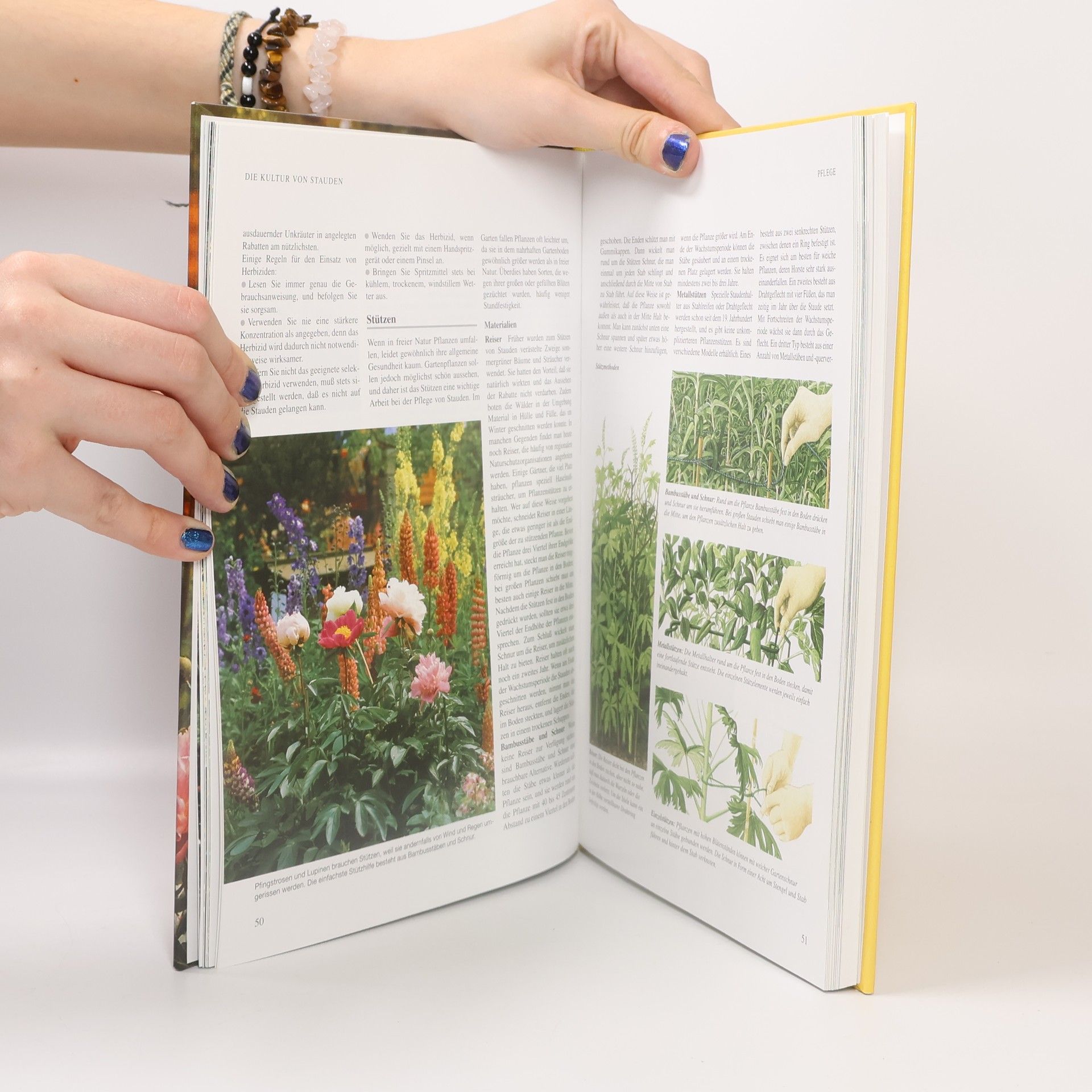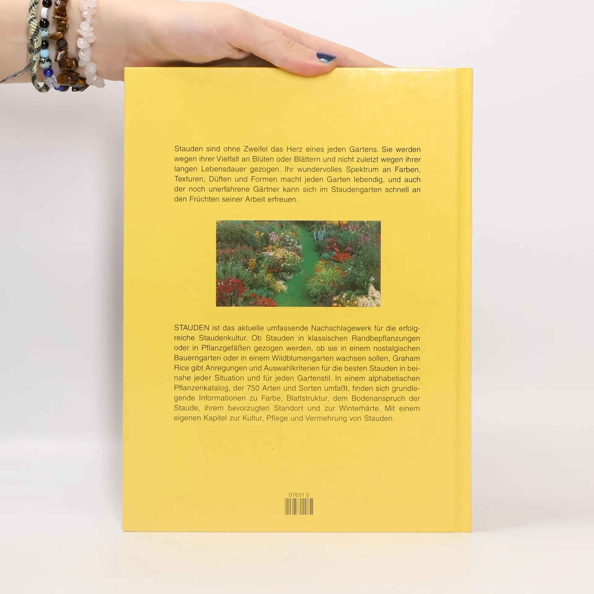 Stauden haben nicht nur eine lange Lebensdauer, sondern fallen durch einen Formen- und Farbenreichtum auf, der jeden Garten zu einem kleinen Paradies werden läßt. Graham Rice hat einen alphabetisch geordneten Pflanzenkatalog zusammengestellt, der 750 Staudenarten umfaßt und über Farbe, Blattstruktur, Bodenanspruch, bevorzugten Standort und Winterhärte der jeweiligen Pflanze informiert. Der Kultur, Pflege und Vermehrung der Stauden ist ein eigenes Kapitel gewidmet.
