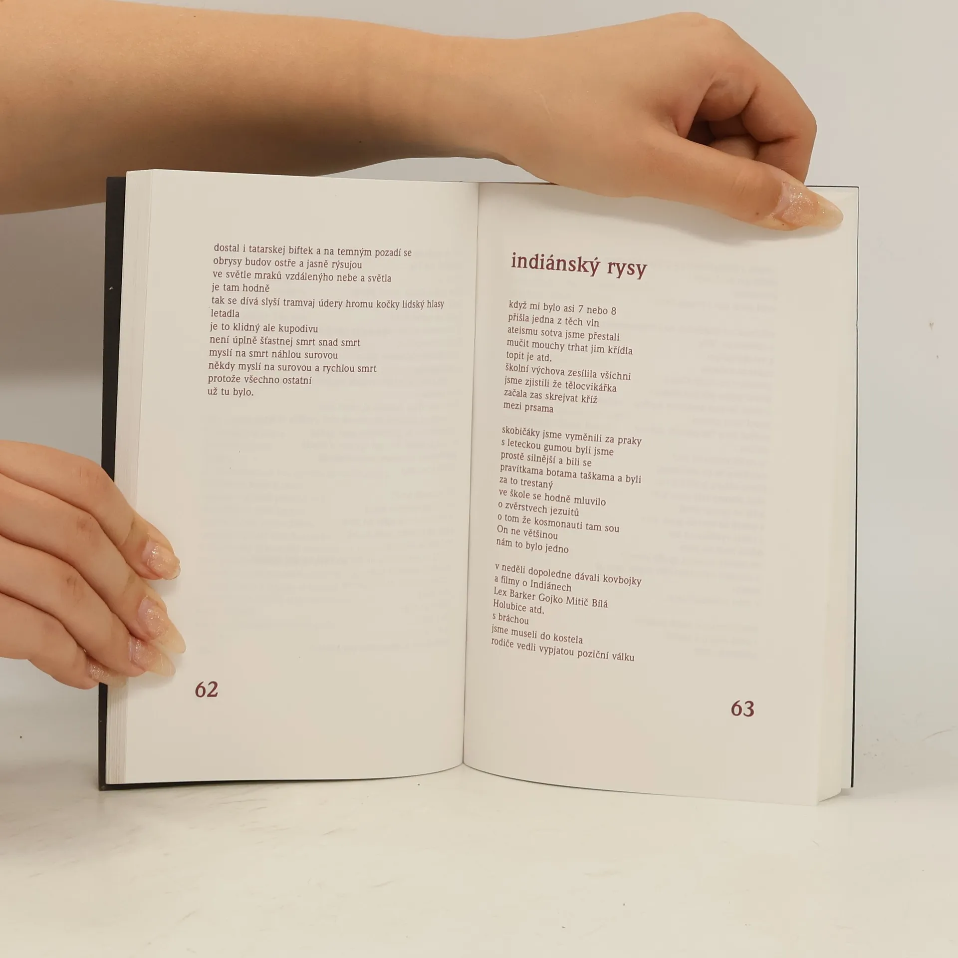 Básnická sbírka, obsahuje cykly Náhodnejch 23, Vlhký básně a jiný příběhy, Krajina s Indiánama.
