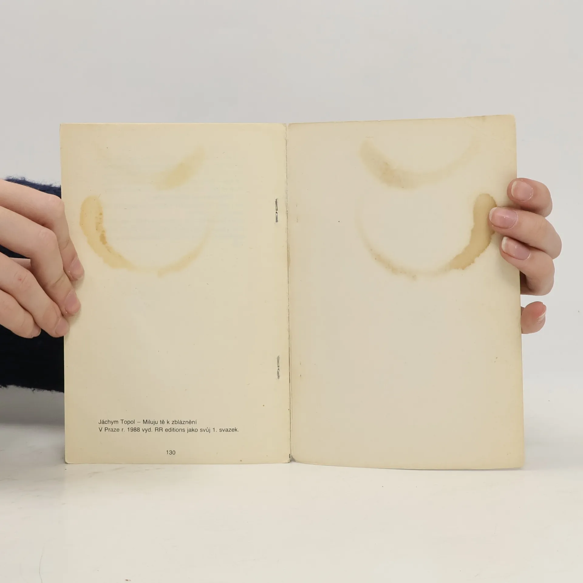 První svazek samizdatové edice RR přinesl v roce 1988 knihu básní Jáchyma Topola (narozen 1962) Miluju tě k zbláznění. Autor publikoval v samizdatových periodicích Violit, Revolver Revue, Vokno, Fragment, Peternoster aj. Jako textař spolupracoval s rockovými kapelami Psí vojáci a Národní třída.Soubor obsahuje básně ze sedmdesátých a osmdesátých let. Sbírka Náhodnejch 23 poprvé vyšla v roce 1985 v edici Mozková mrtvice pod pseudonymem J. Tma, sbírky Vlhký básně a jiný příběhy a Krajina s Indiánama (obě do vydání tohoto svazku nepublikovány) pocházejí z roku 1988.