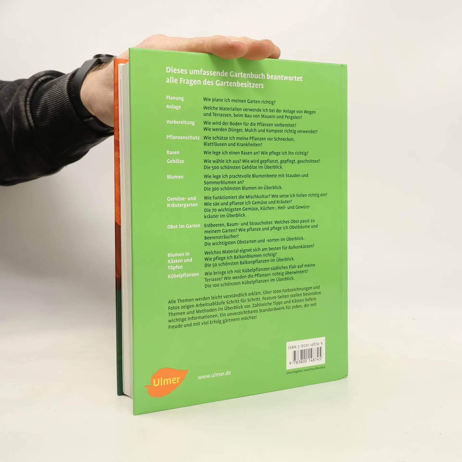 Alles rund ums Gärtnern Alle Themen rund um den Garten werden leicht verständlich erklärt. Über 1000 Farbabbildungen zeigen Arbeitsabläufe Schritt für Schritt. Feature-Seiten stellen besondere Themen und Methoden im Überblick vor. Zahlreiche Tipps und Kästen liefern wichtige Zusatzinformationen. Dieses Buch ist ein unverzichtbares Standardwerk für alle, die mit Freude und Erfolg gärtnern möchten.
