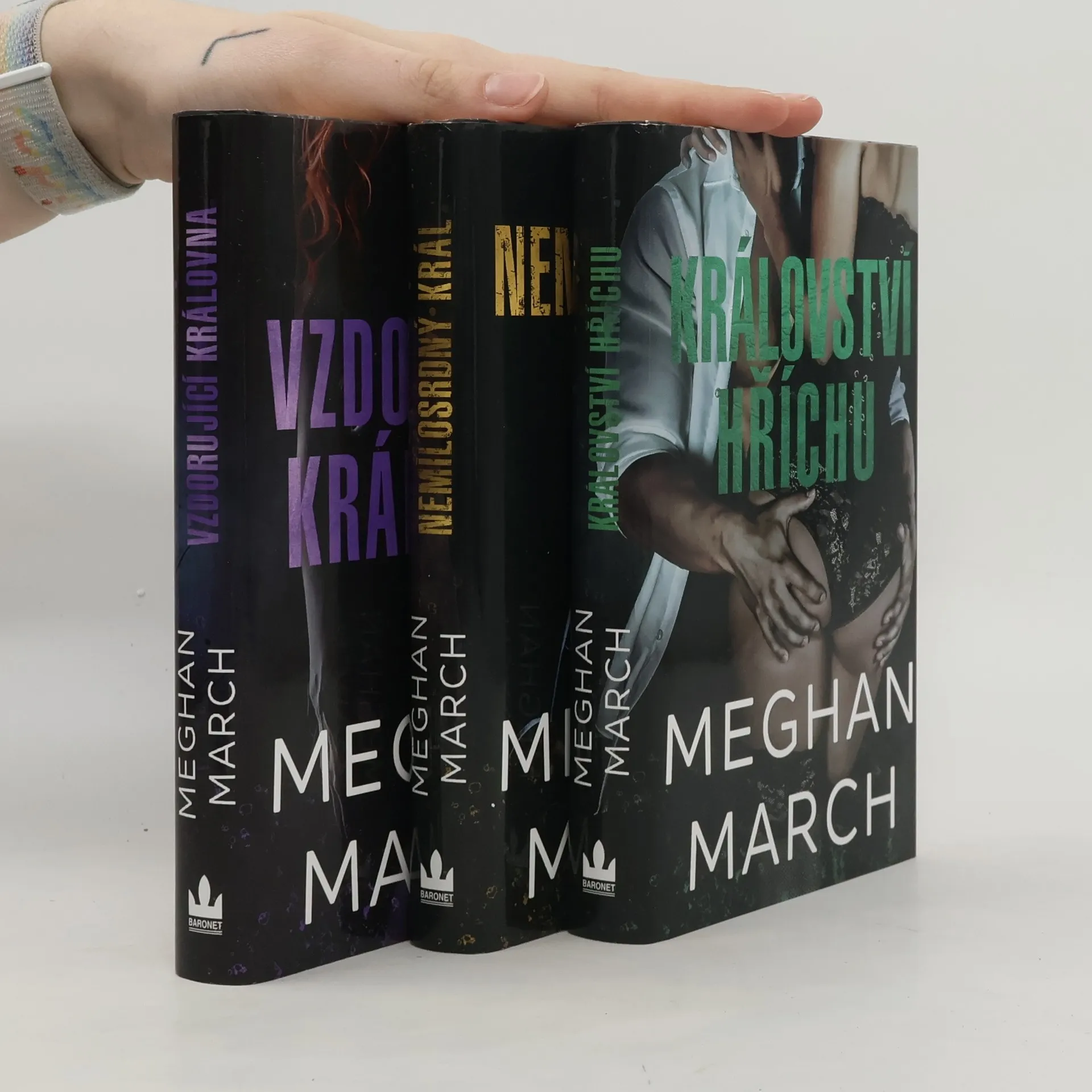 Úspěšná romantická erotická série MOUNT TRILOGY kompletně v boxu! Obsahuje knihy: Nemilosrdný král, Vzdorující královna a Království hříchu. New Orleans patří mně. Neznáte moje jméno, ale ovládám všechno, co vidíte – a taky všechno, co nevidíte. Můj vliv nezná hranic a mé požadavky jsou vždy splněny. Nemusel jsem půjčit peníze krachující rodinné palírně, ale těší mě, že je mám v hrsti. Že mám v hrsti ji. Neví, že mě zaujala. Měla být opatrnější. Bude moje. Dostanu ji. Možná si ji dokonce nechám. Je načase, aby mi splatila dluh. Keiro Kilgoreová, už jsi majetkem Lachlana Mounta.